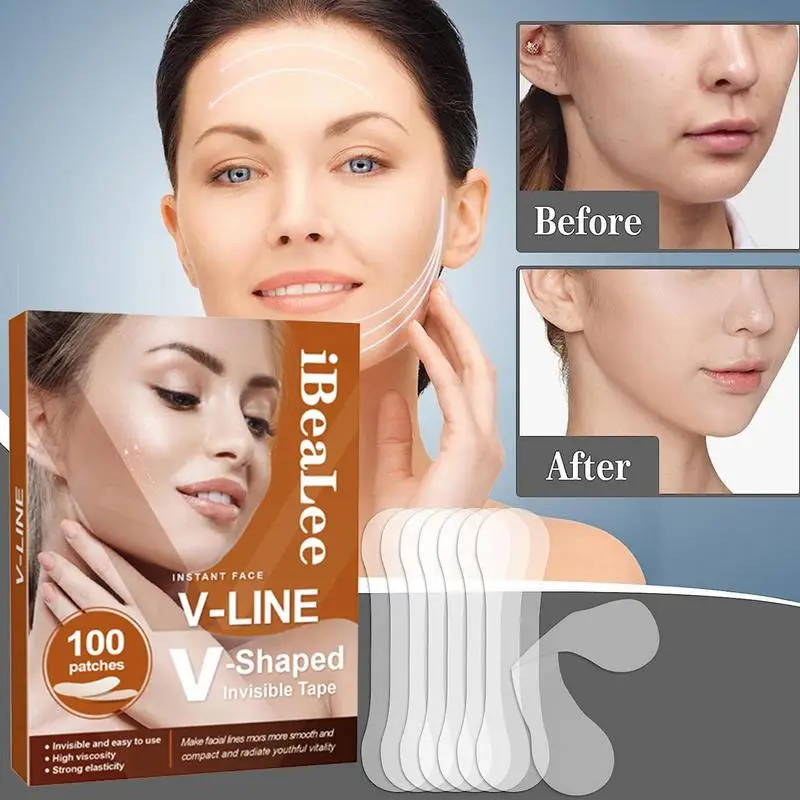 100pcs Face Lift Tape Invisible Tape For Face Facial Tape For Wrinkles Ultra Thin Invisible V Shaped Instant Face Lift Sticker - Купить с бесплатной доставкой