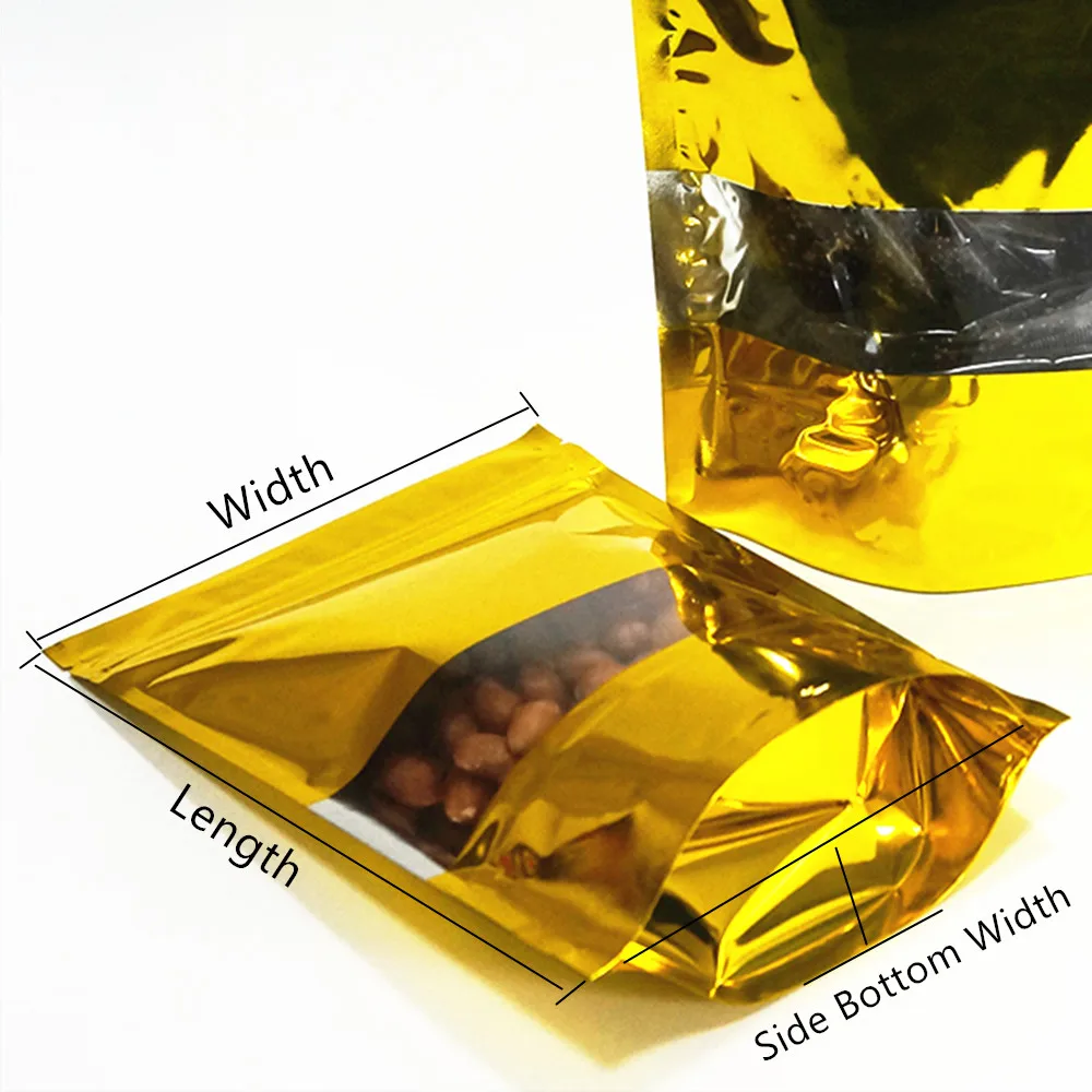 «100pcs Gold Standing Up Aluminum Foil Zip Lock Bags with Clear Window - Food Plastic Package Zipper Reusable Snack Packing Bag» по лучшей цене на рынке! Всего за 15$ (1425рублей)