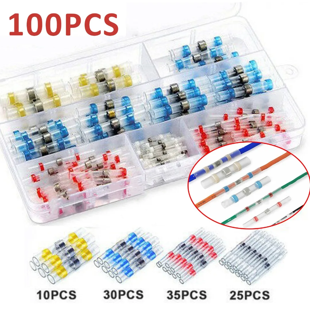 «100pcs Solder Shrink Tubing Solder Butt Connector Cable Crimp Connector Terminals Wire Cable Insulation Sleeving For Electrical» по лучшей цене на рынке! Всего за 8$ (760рублей)
