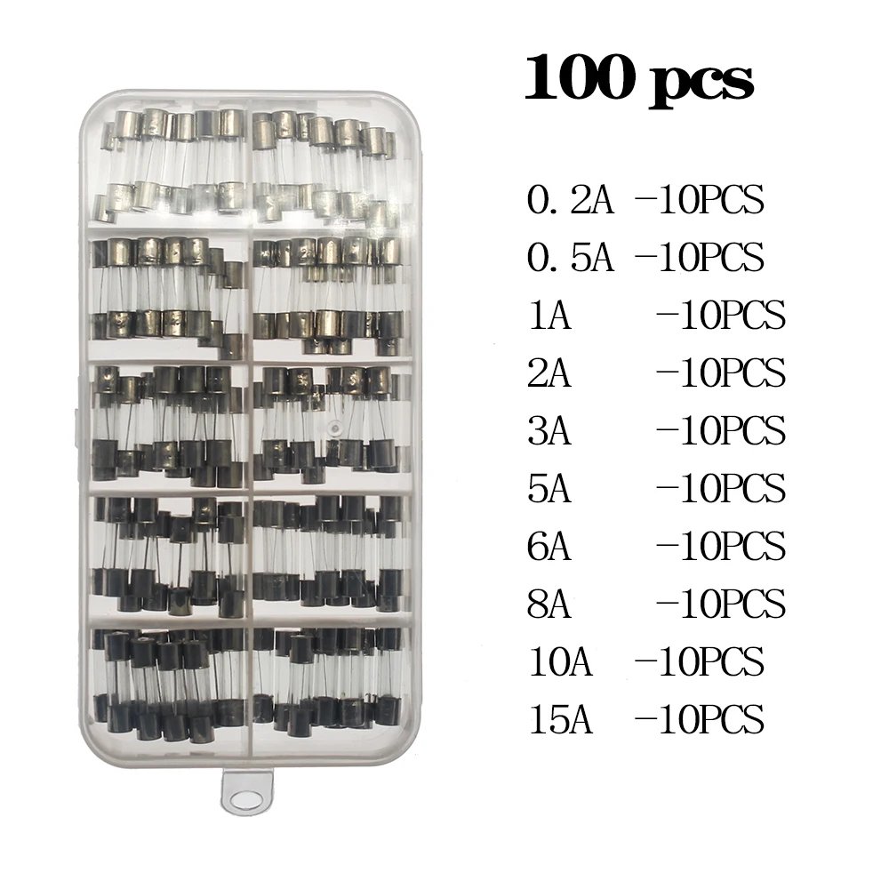 "100pcs/225pcs 5x20mm 0.1A-30A Household Fuses Electrical Assorted Fuse Amp Fast-blow Glass Fuse Mix Set With Box 0.2A 0.5A 1A 2A" * Buy Now Just For 8$
