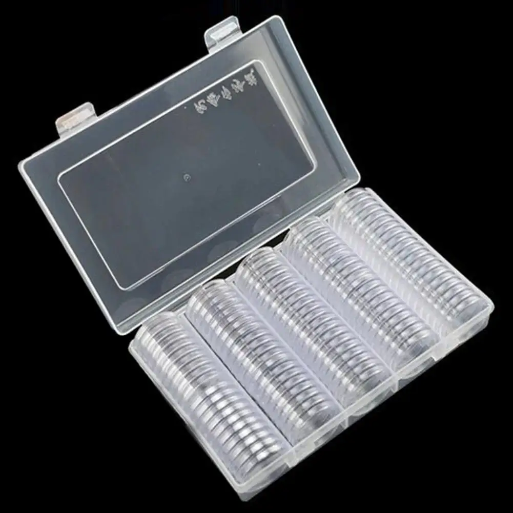 100pcs/set Container Round Portable Protective Coin Cases Storage Coins Holder Capsule Clear Boxes Plastic Collectable Durable - Купить с бесплатной доставкой