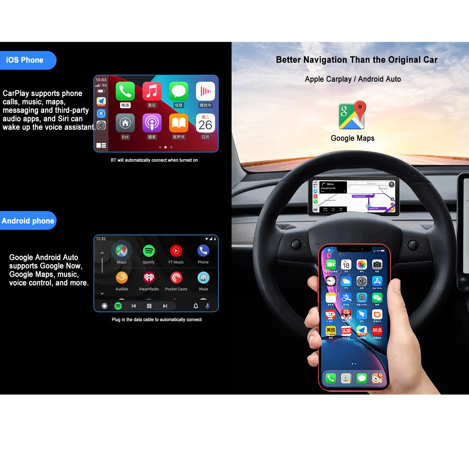 10.25In HD Touch Screen Car LCD Dashboard for Tesla Model 3 / Y Car Multimedia Player Support Wireless CarPlay Android Auto - Купить с бесплатной доставкой