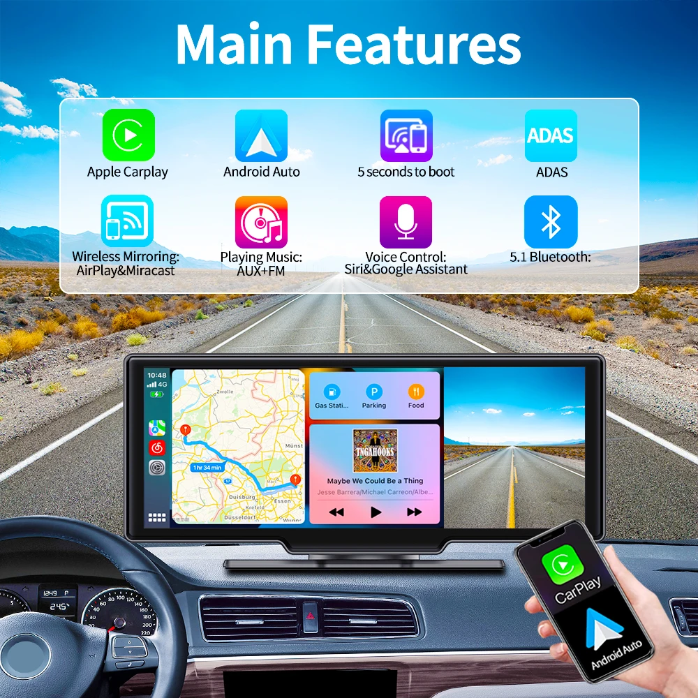 10.26" 4K Dash Cam ADAS Car bluetooth Carplay & Android Auto Car DVR 5G WiFi GPS Navigation Rearview Camera Dashboard Recorder - Купить с бесплатной доставкой