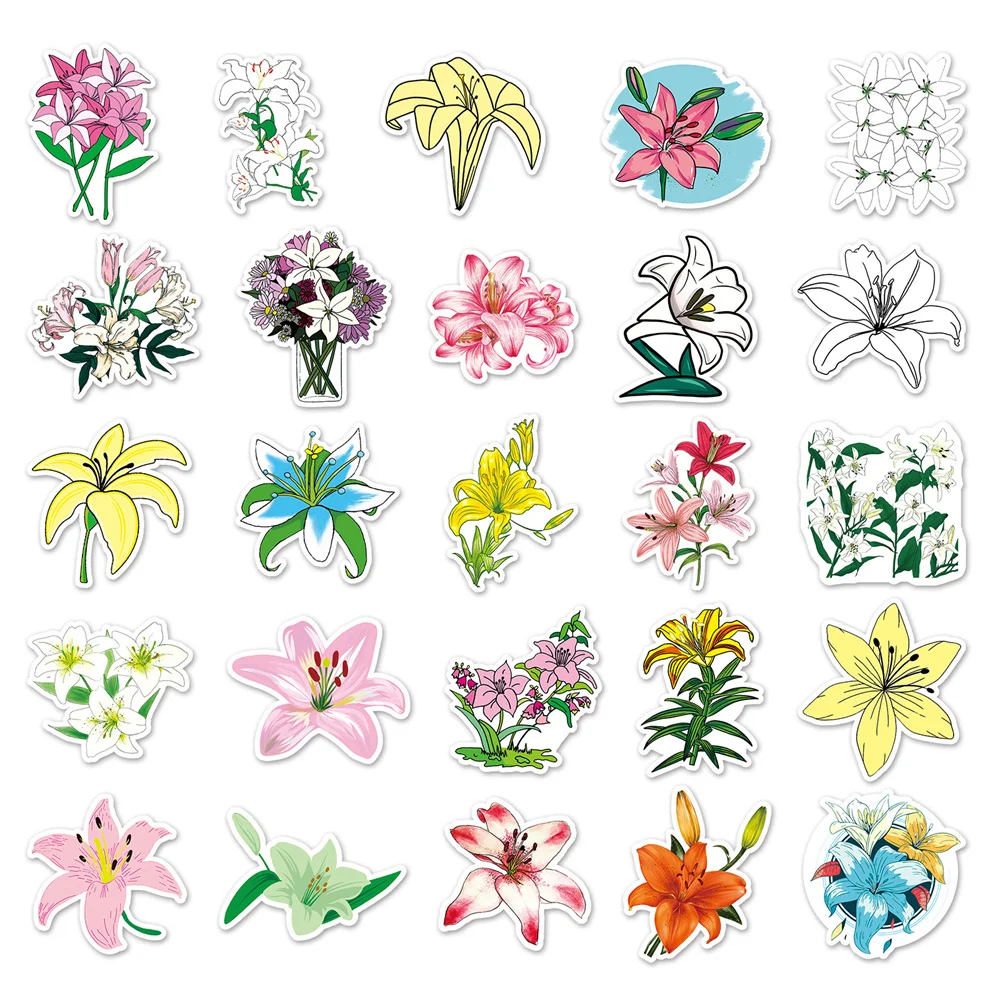 10/30/50PCS Lily Flower Cartoon Personality Creative Graffiti Sticker Guitar Computer Refrigerator Waterproof Sticker Wholesale - Купить с бесплатной доставкой