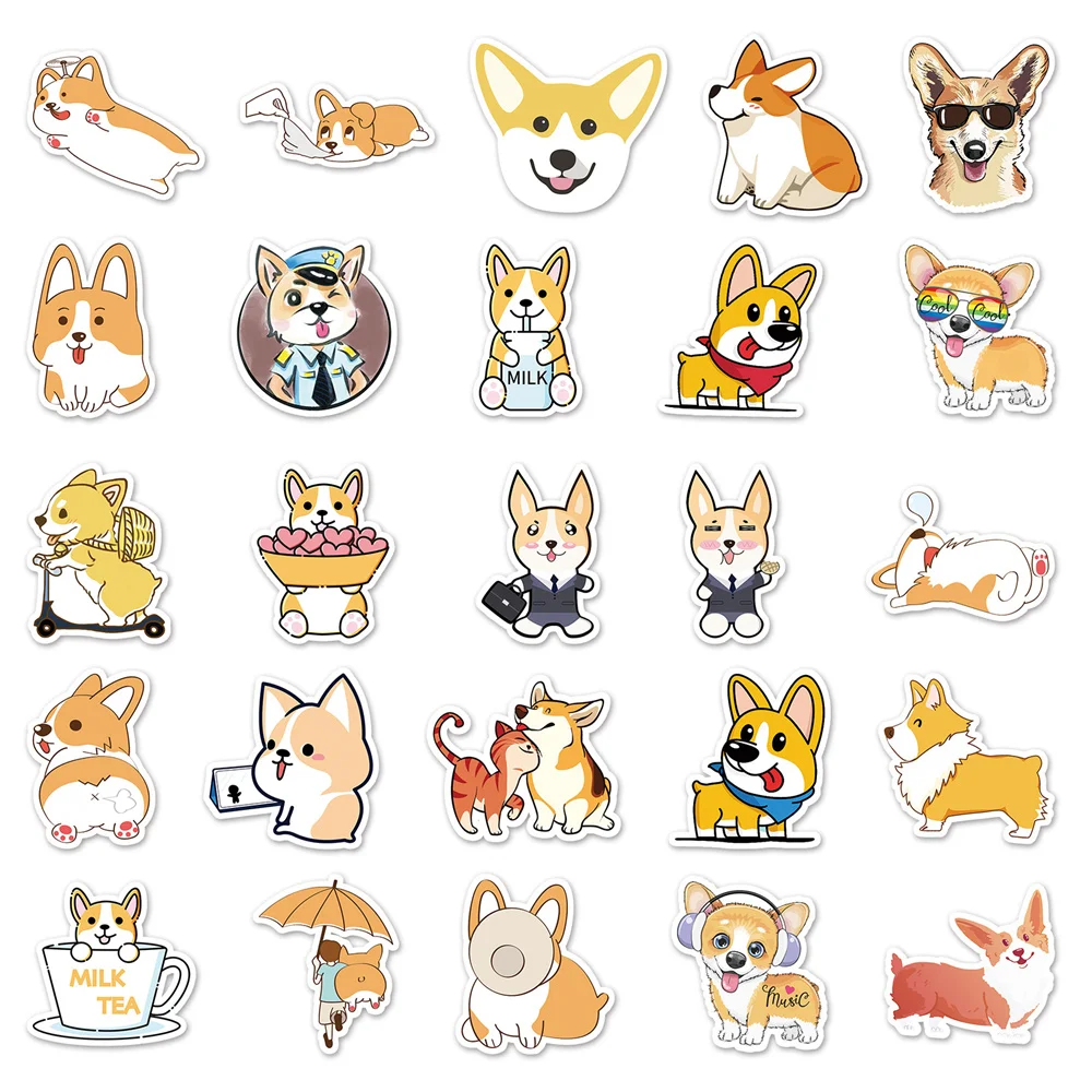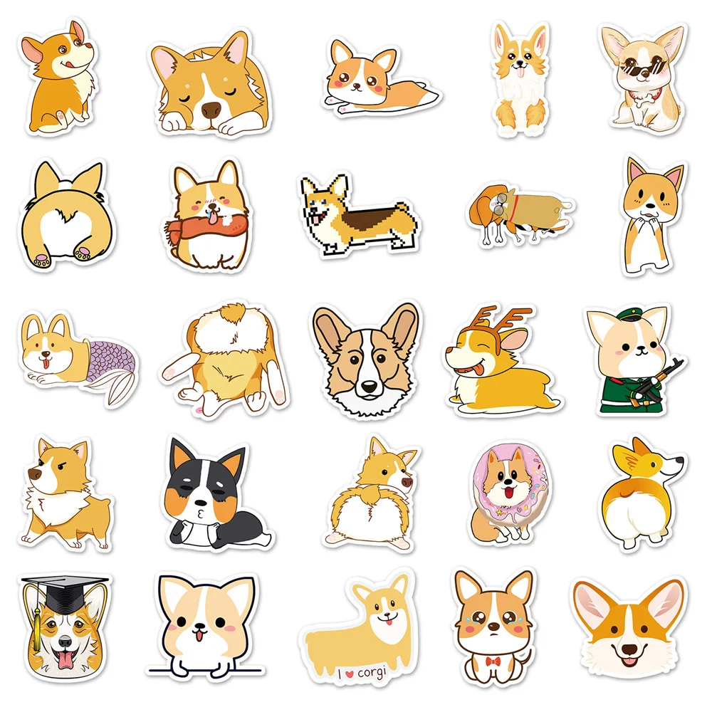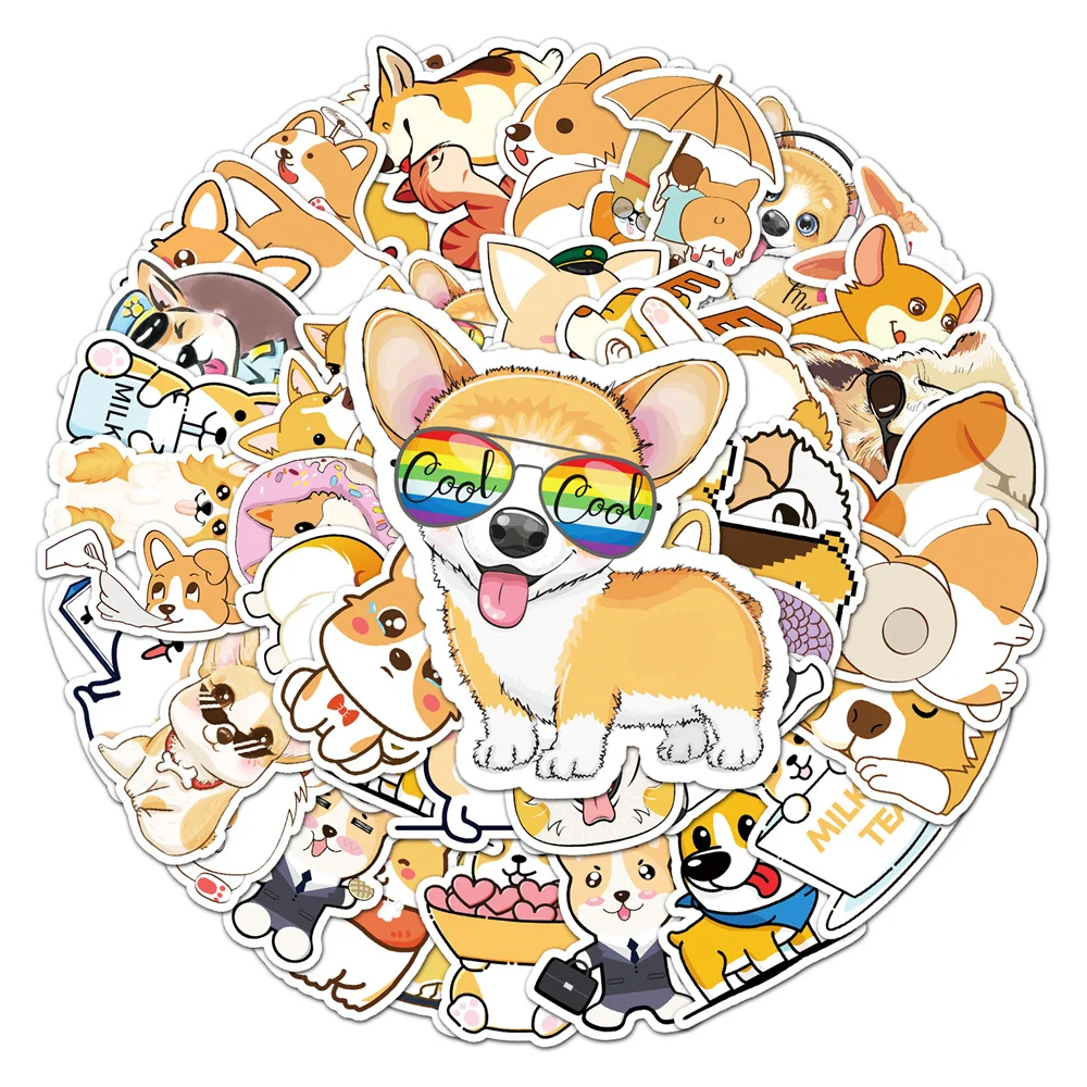 10/30/50PCS New DIY Corgi Cartoon Personality Creative Computer Luggage Table Car Chair Decoration Waterproof Sticker Wholesale - Купить с бесплатной доставкой