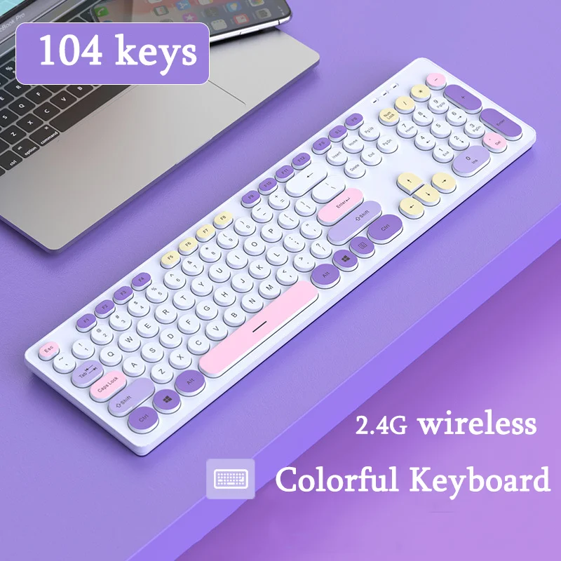 104 Keys Macaron 2.4G Wireless Keyboard Colorful Slim Silent Keypad Purple Pink USB Gaming Keyboard For Laptop PC Computer Girl - Купить с бесплатной доставкой