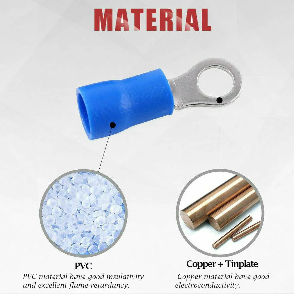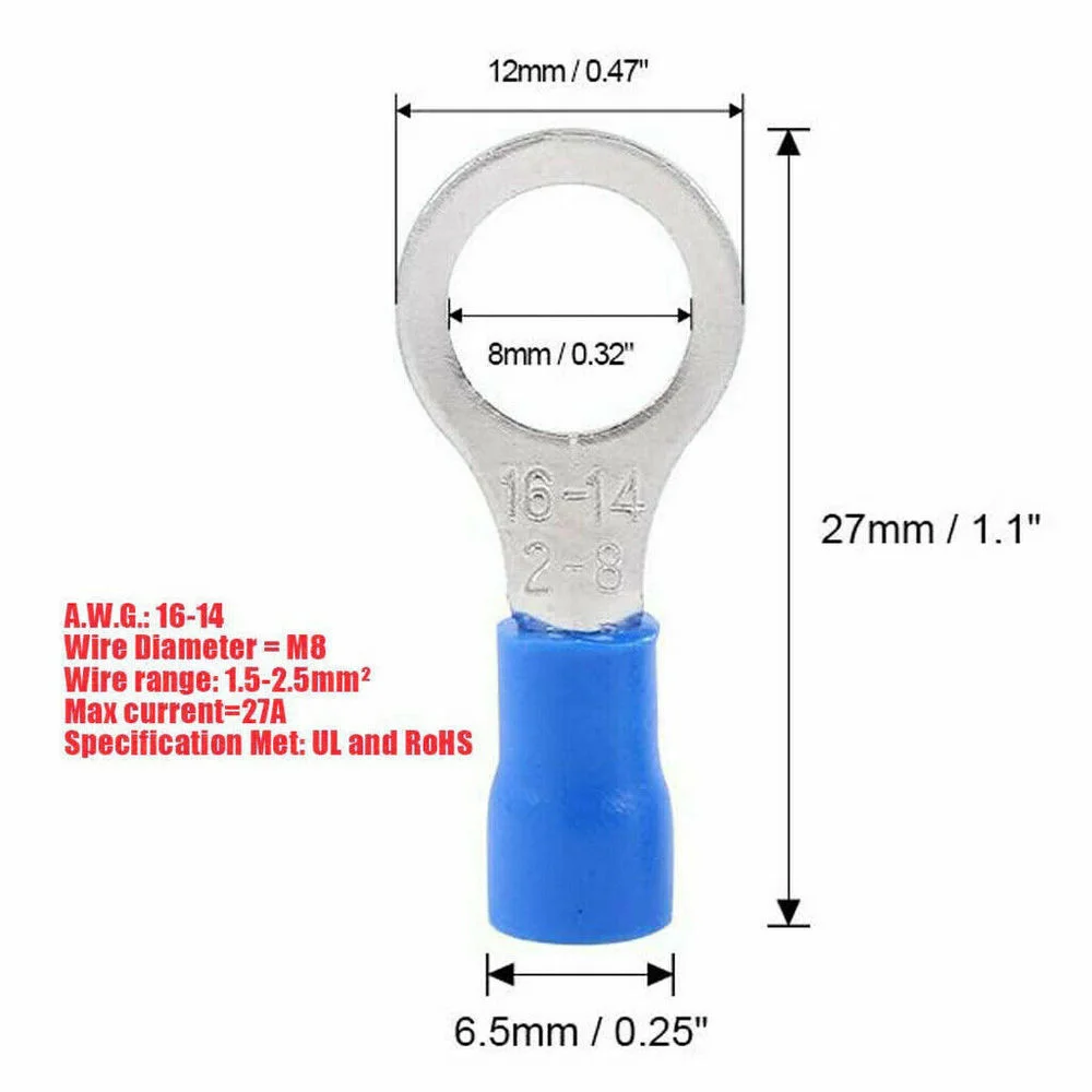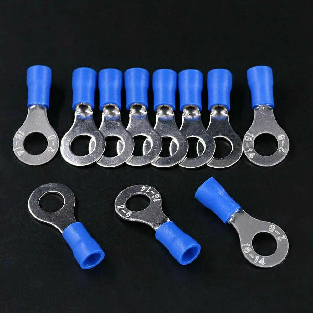 "10/50/100PCS Blue RV2 Insulated Ring Terminals Wire Cable Electrical Crimp Connectors 16-14 AWG Kit M3/M4/M5/M6/M8" * Buy Now Just For 4$
