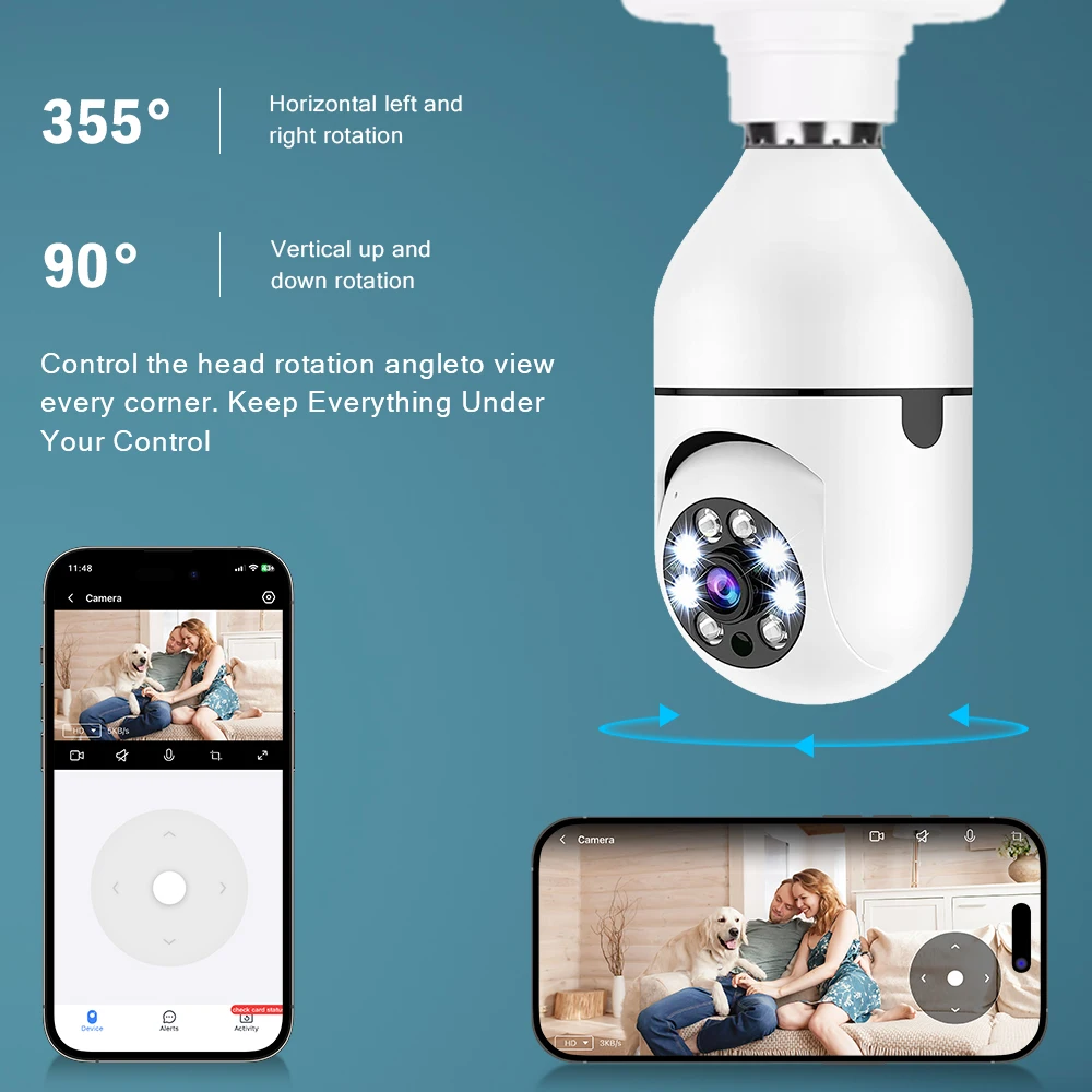 1080P 2MP E27 Bulb Camera WiFi Indoor Video Monitoring Home Safety Monitor Full Color Night Vision Automatic Tracking Carecam - Купить с бесплатной доставкой