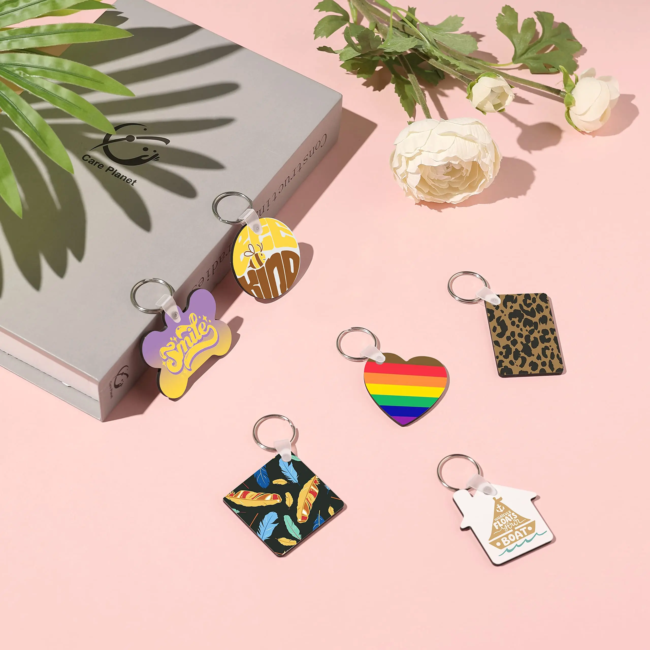 108PCS Sublimation Blank KeyChain 6 Pcs/Style Heat Transfer Double Side Printed MDF DIY Keychain with Key Rings - Купить с бесплатной доставкой