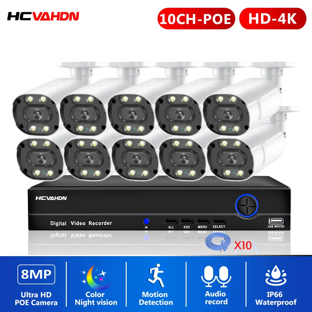 10CH POE CCTV Camera Security System Kit 4K NVR Kit Full Color Night Vision IP Bullet Camera Video Surveillance System Set 8CH - Купить с бесплатной доставкой