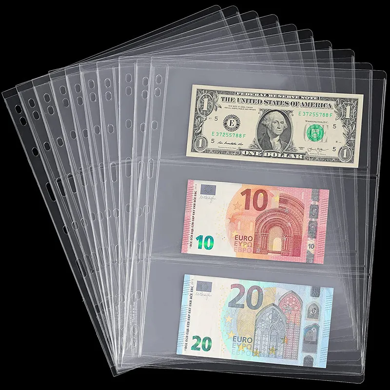 10PCS Loose Leaf Sheet 3-Slot Transparent Banknotes Holder Portable Paper Money Protective Bag Paper Money Collection Album - Купить с бесплатной доставкой