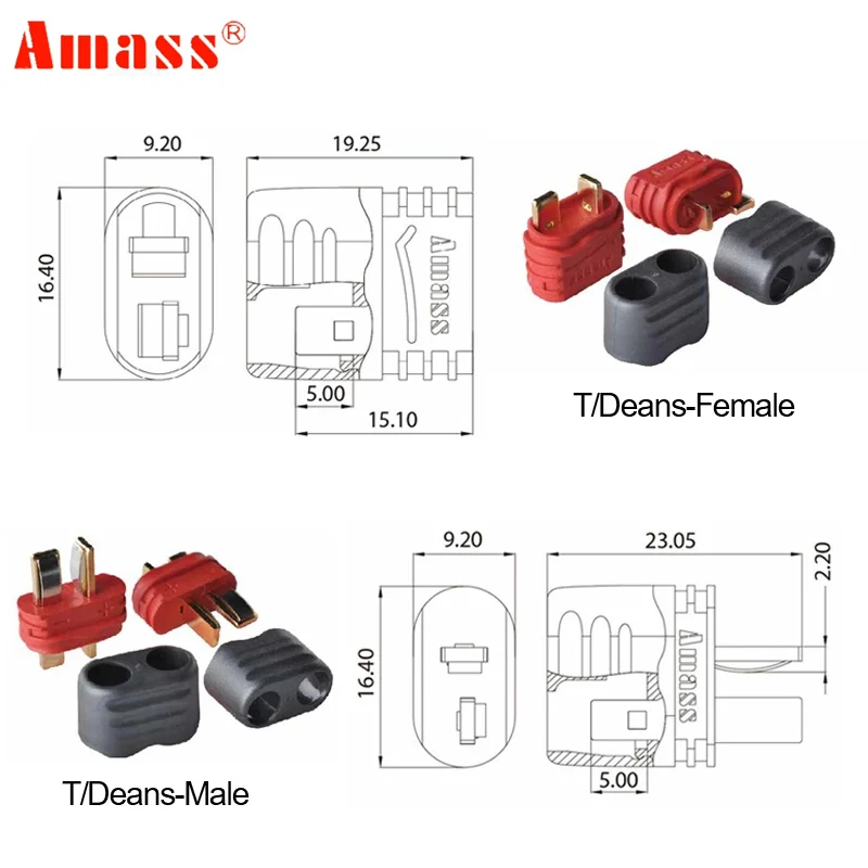 KEyFgxrpXДолго искали 10Pair Amass T Plug Deans Female Male Connectors 2 Pin Brass Bullet with Sheath Cover for FPV RC Drone Lipo Batteries RC Parts, но не могли найти? Предоставляем вашему вниманию 10Pair Amass T Plug Deans Female Male Connectors 2 Pin Brass Bullet with Sheath Cover for FPV RC Drone Lipo Batteries RC Parts по лучшей цене на рынке!