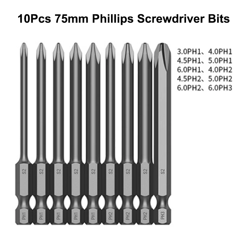 HsurTSkrHere you can buy 10Pcs S2 Phillips Head Drill Bit Set 75mm 100mm Long Cross Screwdriver Bit Magnetic Security Electric Phillips Bit Screwdriver with free delivery to your post office.