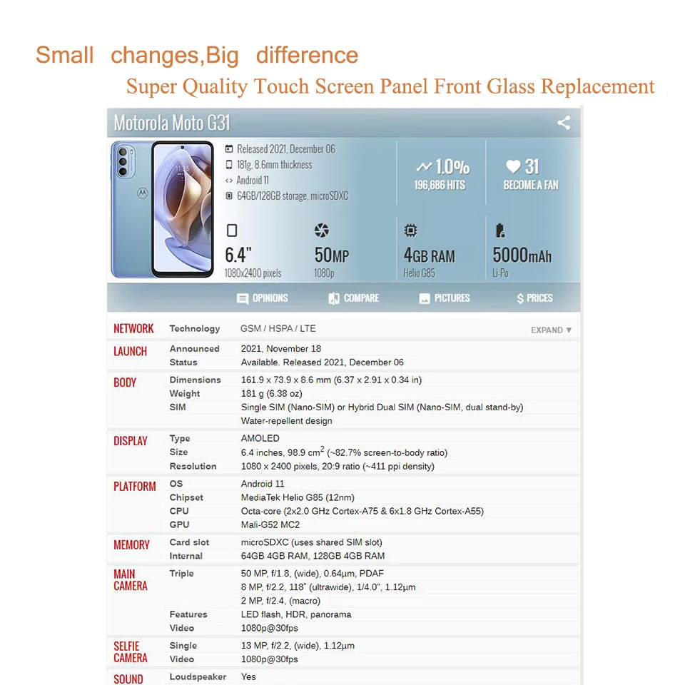 «10Pcs/Lot For Motorola Moto G31 Touch Screen Front Outer Glass Panel Lens For Moto G31 LCD Glass With OCA Glue Replacement» по лучшей цене на рынке! Всего за 9$ (855рублей)