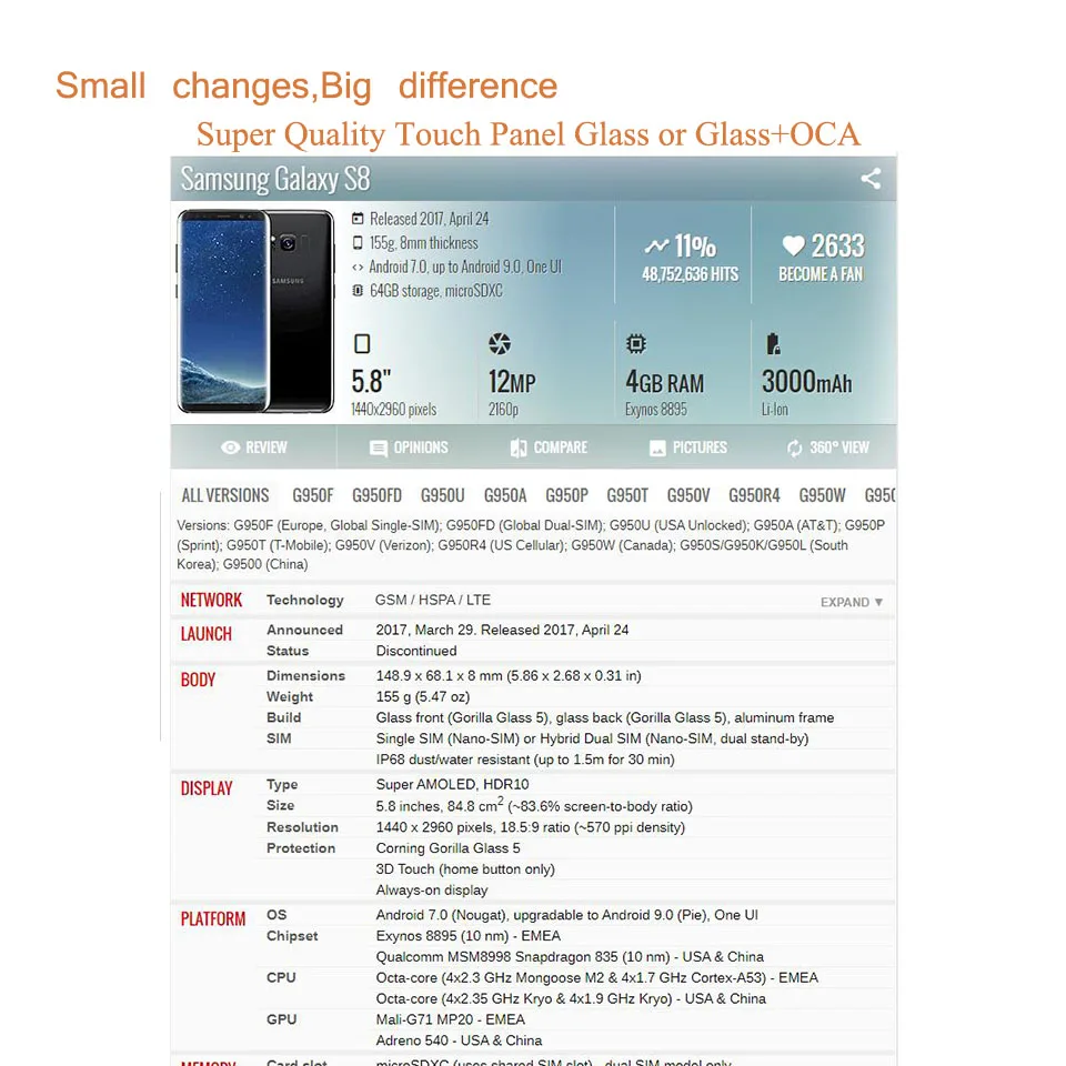 "10Pcs/Lot For Samsung Galaxy S8 S9 Plus Touch Screen Front Glass Panel Outer Glass Lens With OCA" * Buy Now Just For 20$