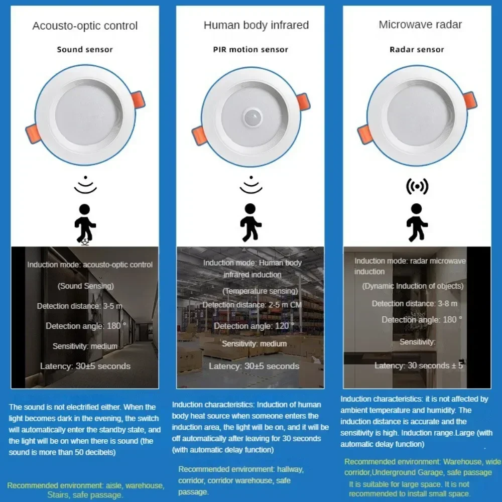 10Pcs/Lots Voice Infrared Radar Human Body Sensor LED Downlights, Embedded Hole Light, Hotel Corridor Ceiling Barrel White Light - Купить с бесплатной доставкой