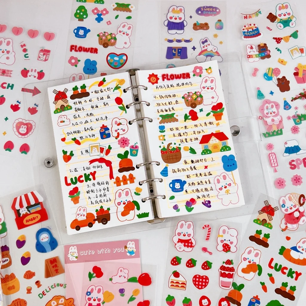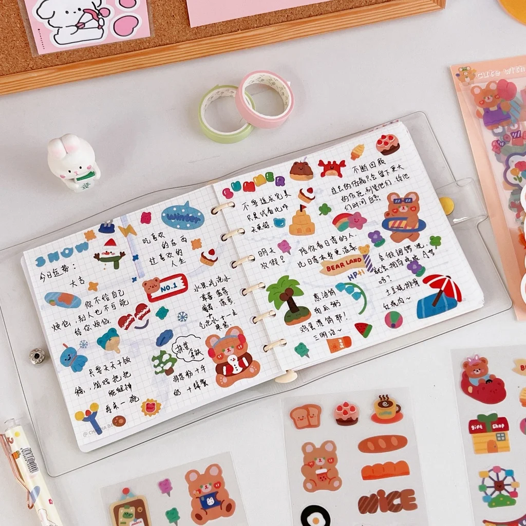 10Pcs/Set Cute Cartoon Handbook Stickers PET Transparent Scrapbooking Sticker Paper Book Journal Album Planners Handbook Diary - Купить с бесплатной доставкой