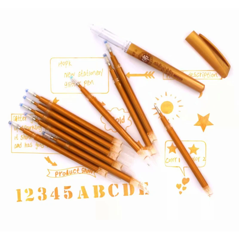 "10Pcs/set Glitter Gold Pen Refill Rod Sutra Scriptures Excerpt Special Pen Refill 0.7mm Painting Gel pen School Stationery" * Buy Now Just For 3$