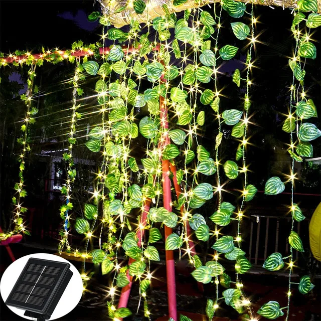 10m Solar Ivy String Lights LED Outdoor Artificial Vine Christmas Garland Fairy String Plant Lamp Maple Leaf Green Rattan String - Купить с бесплатной доставкой