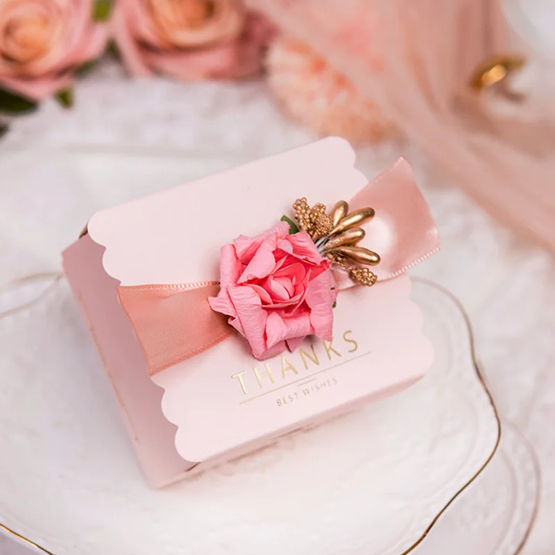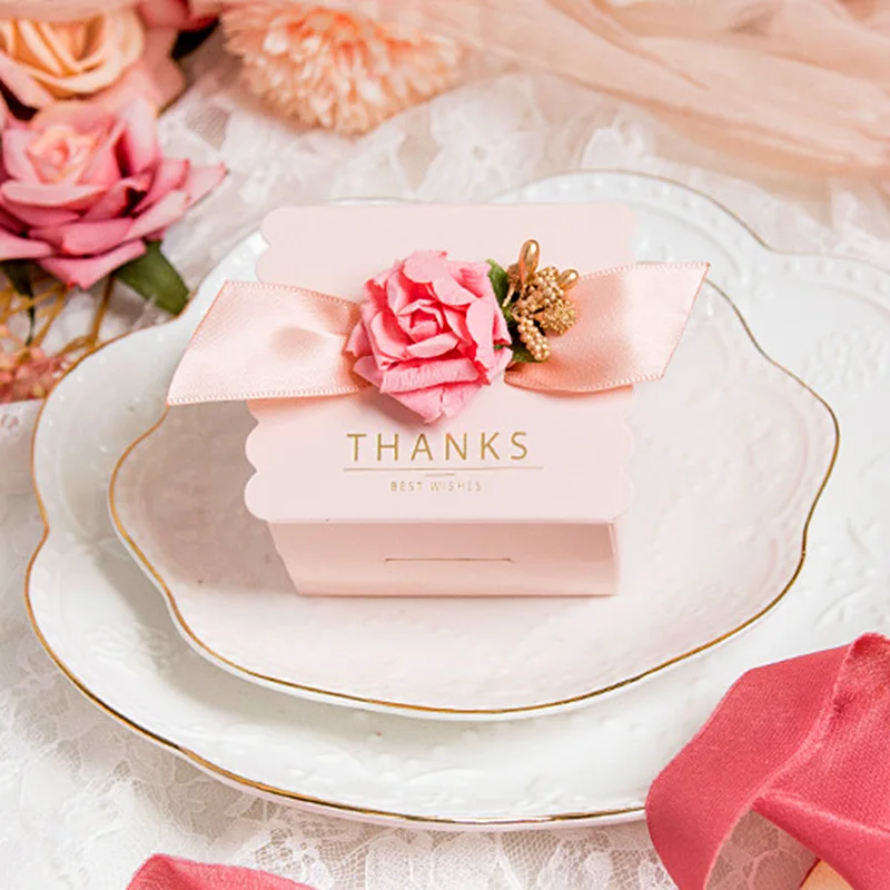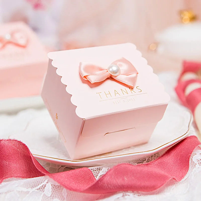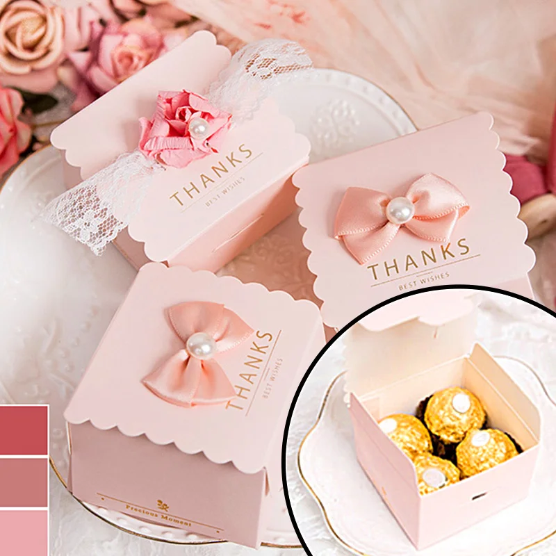 10pcs Beautiful Pink Square Rose Ribbon Wedding Party Supplies Candy Chocolate Packaging Birthday Gift Boxes Portable Creative - Купить с бесплатной доставкой
