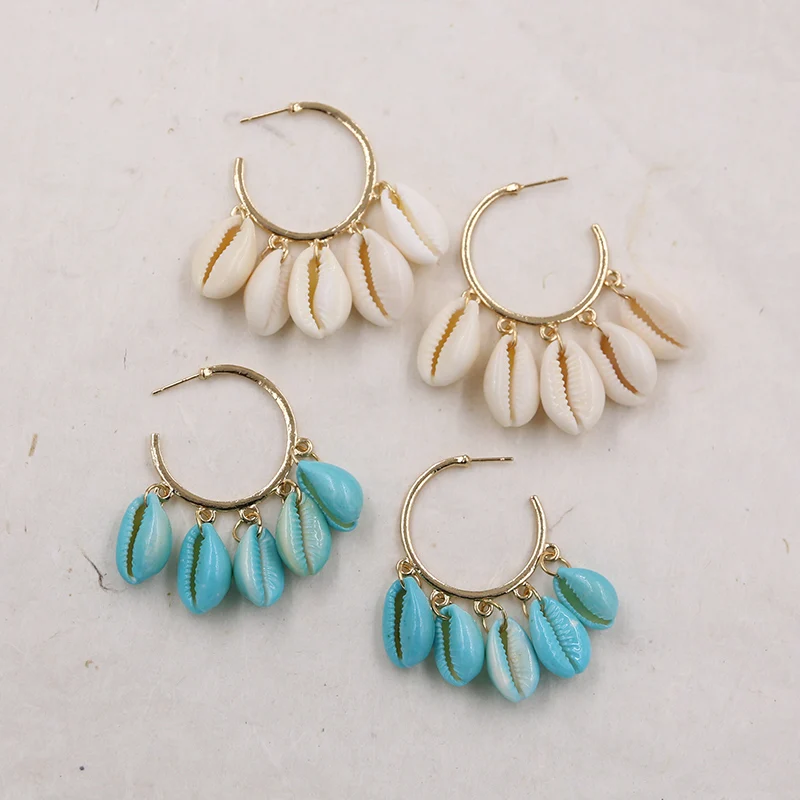 10pcs Bohemian Gold Cowrie Conch Shell Connectors Charms Spacer Beads Making DIY Handmade Finding Jewelry