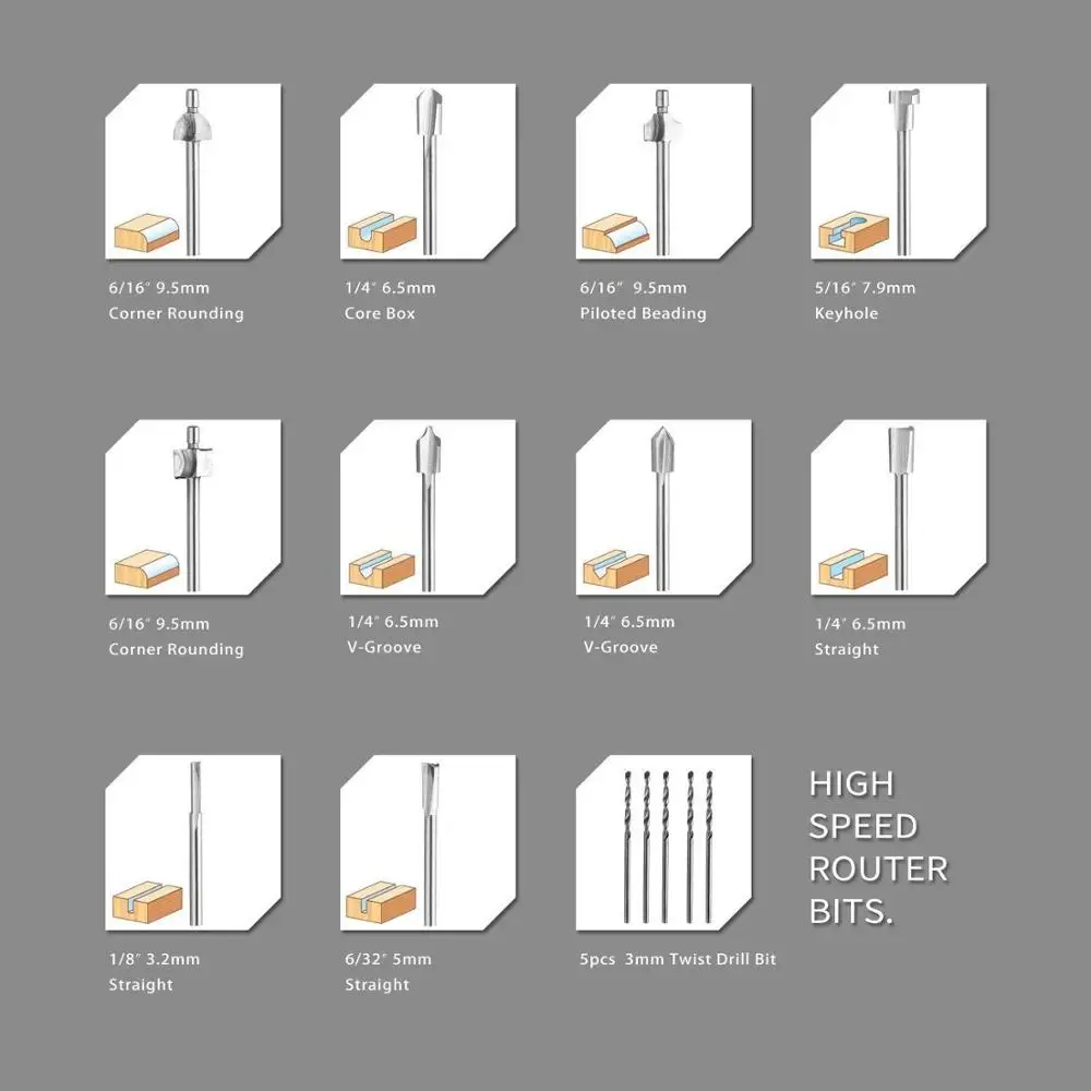 nkZtxRdbvGHere you can buy 10pcs HSS Router Bits Wood Cutter Milling Fits Dremel Rotary Tool Set 1/8" 3mm Shank Carpentry Router Bits For Rotary Tools DIY with free delivery to your post office.