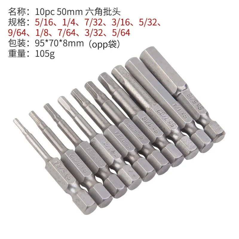 10pcs Hexagonal Bit Set Multi Standard Wear Resistant and Durable Imperial Size Hexagonal Bit S2 Alloy Steel Screwdriver Bit - Купить с бесплатной доставкой