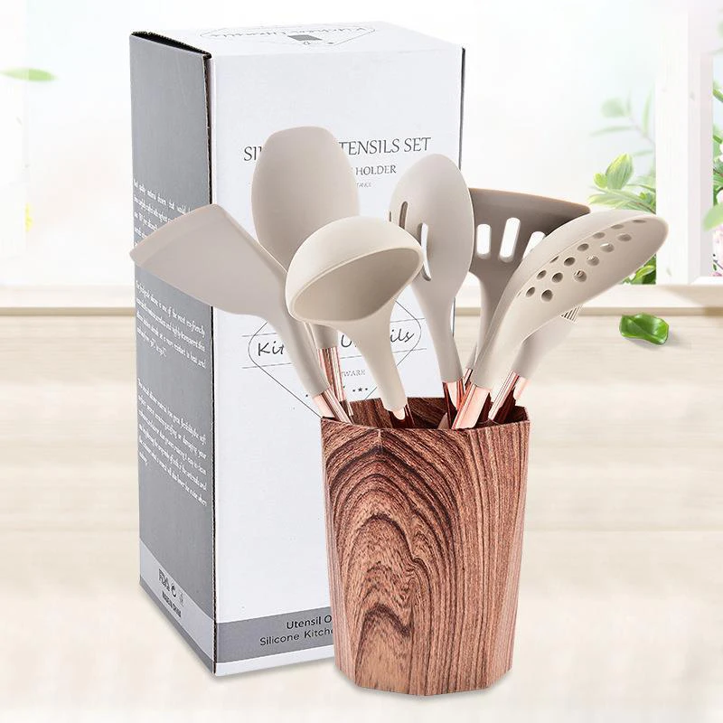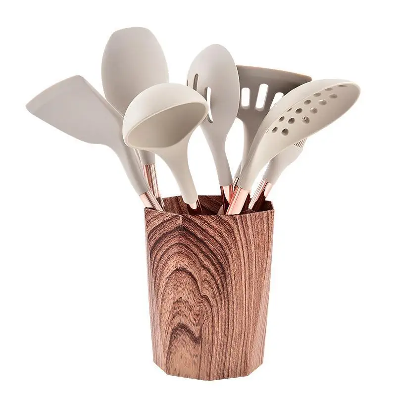 10pcs Quality Wood Grain Handle Silicone Kitchen Utensils Set Kitchen Cooking Accessories Spoon Spatula With Storage Bucket Tool - Купить с бесплатной доставкой