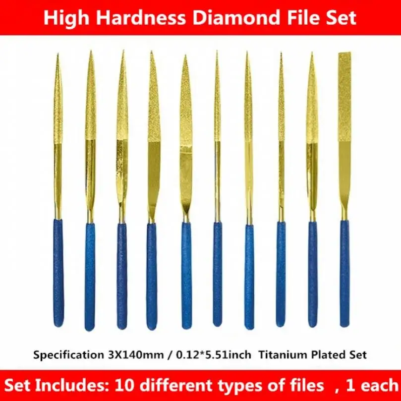 NZtWkIaXnHere you can buy 10pcs Titanium Coated Diamond Needle Files 140mm Round Square Cutter, Sharp Flat File Set for Deburring Tile Woodworking Tools with free delivery to your post office.