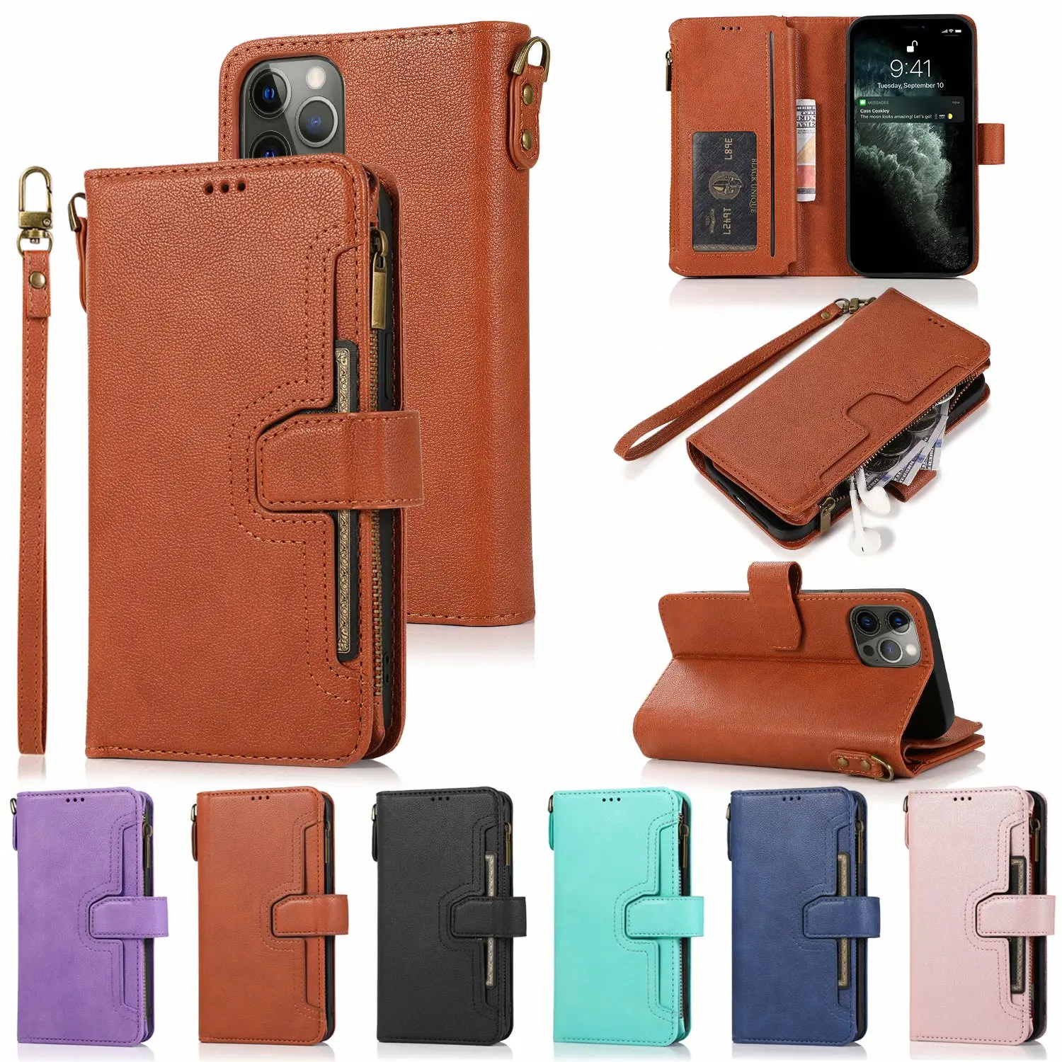«10pcs Zipper Multifunctional Cards Holder Magnetic Wallet Leather Cover Case For Iphone 14 13 12 Mini 11 Pro Xs Max Xr 8 Plus» по лучшей цене на рынке! Всего за 67$ (6365рублей)