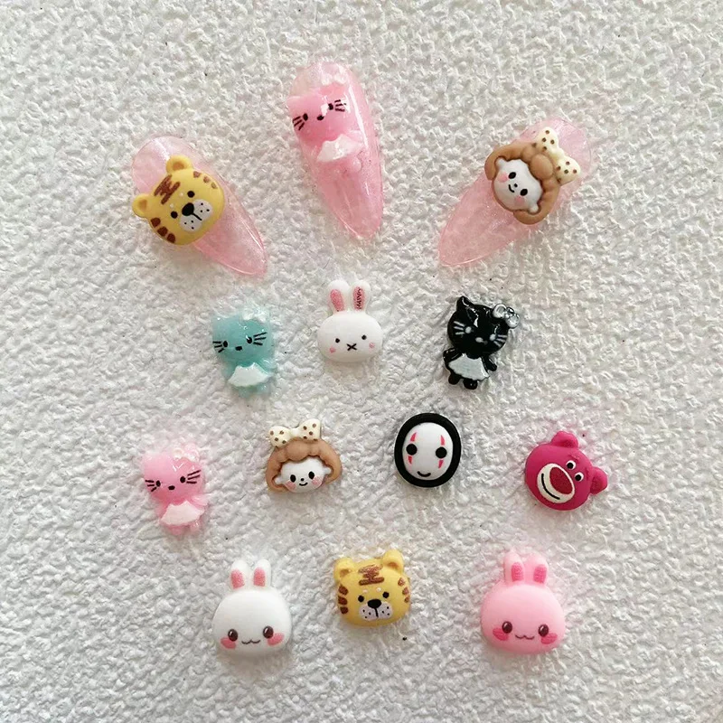 "10pcs/Package 2022 New Cartoon Nail Accessories 3D Cute Bear Rabbit Cat Pattern Cartoon Nail Decoration" * Buy Now Just For 1$
