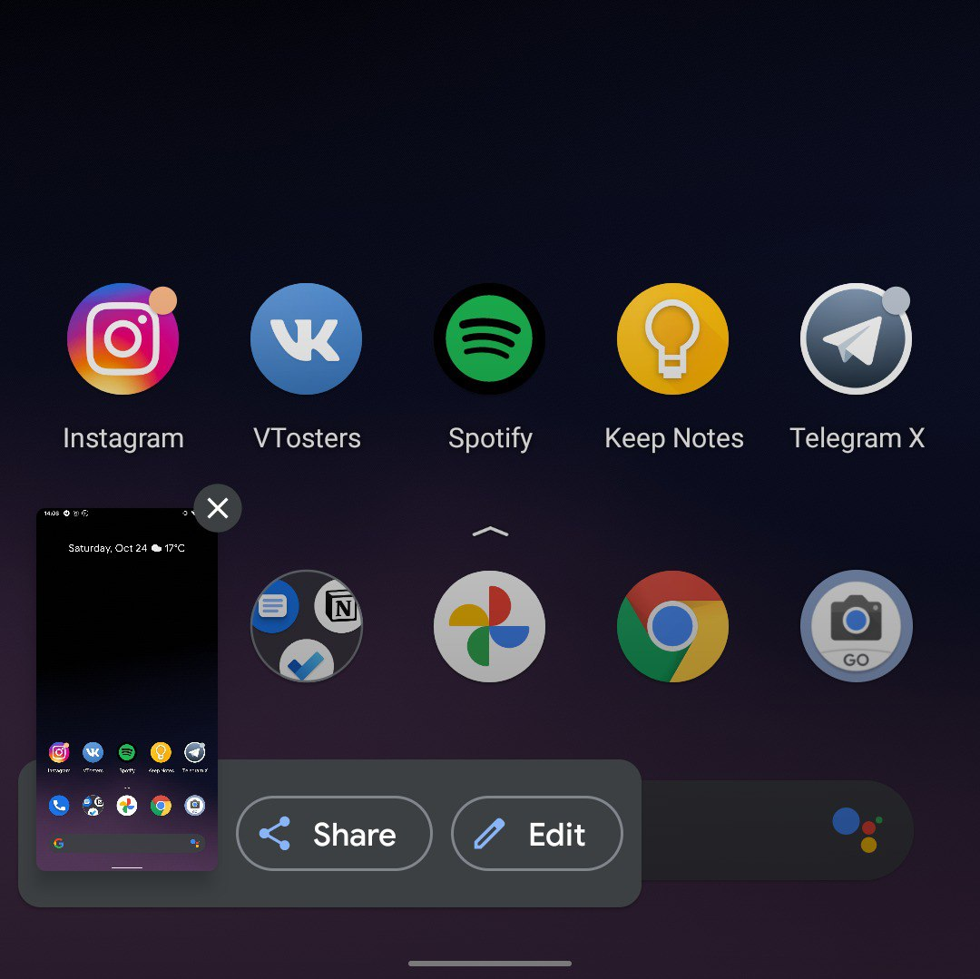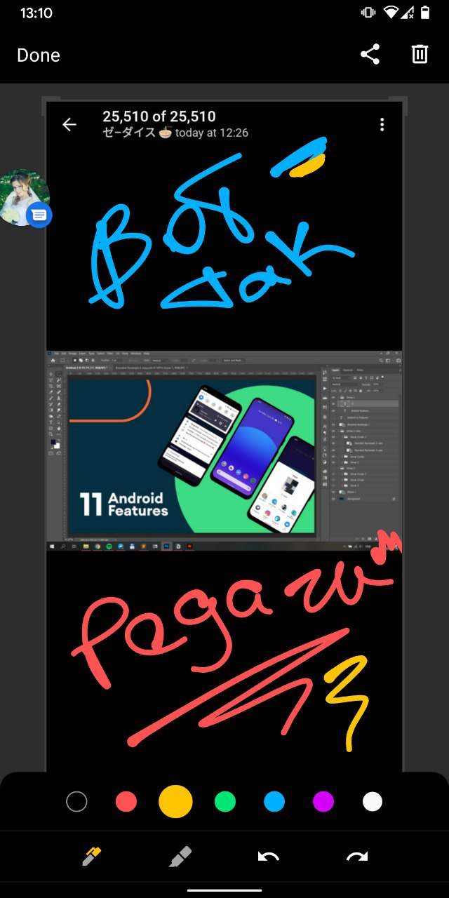 А вот они это самое полезное и наглядное нововедение 11-го. Теперь они класиво переходят в миниатюрку (аля iOS) и появляется две кнопки, с редактированием и поделиться. Нет больше кнопки быстрого удаления, но можно тыкнуть редактировать и там на корзинку и скрин удалится.