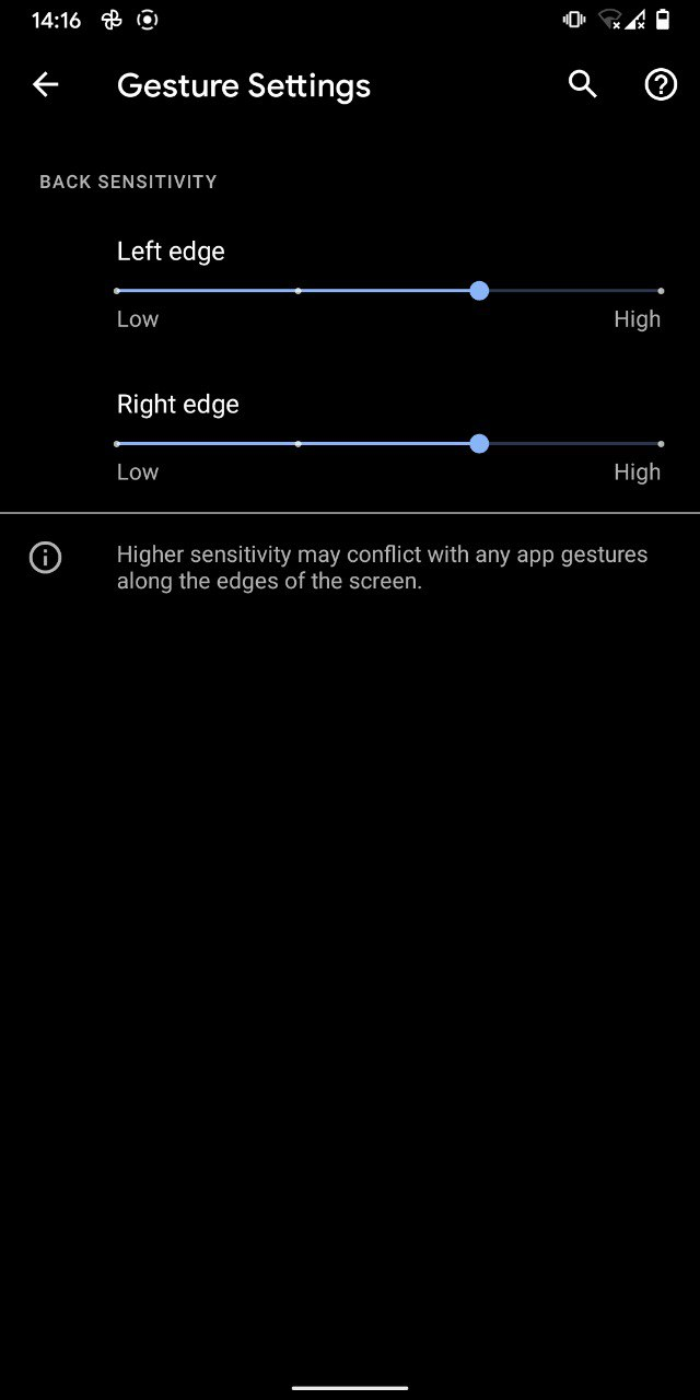 Появилась возможность тонкой настройки чувствительность по краям экрана. Теперь можно установить минимум для левой и нормально доставать боковре меню в приложениях.