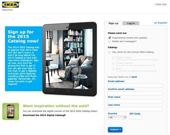 Этим пользуются интернет-магазины одежды, различных аксессуаров, игрушек. Яркий пример - IKEA: у них на сайте можно скачать каталог взамен на подписку.