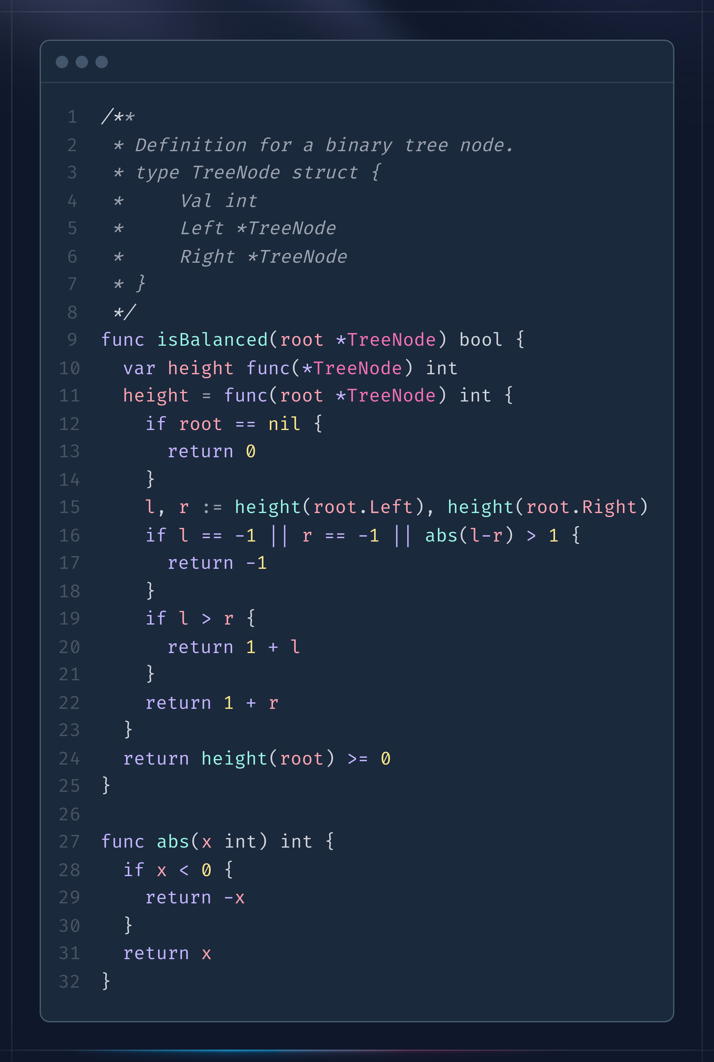 func isBalanced(root *TreeNode) bool {