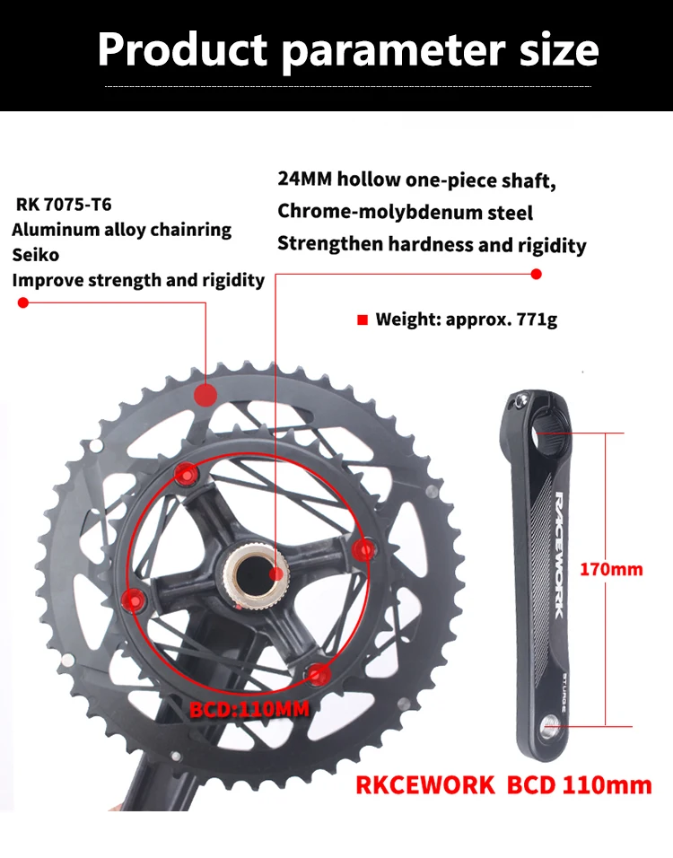 «110BCD Road Bike Crankset Hollow Double Sprockets 170mm Bike Crank 53-39T 50-34T Chainring With Bottom Bracket For 10 11 Speed» по лучшей цене на рынке! Всего за 63$ (5985рублей)