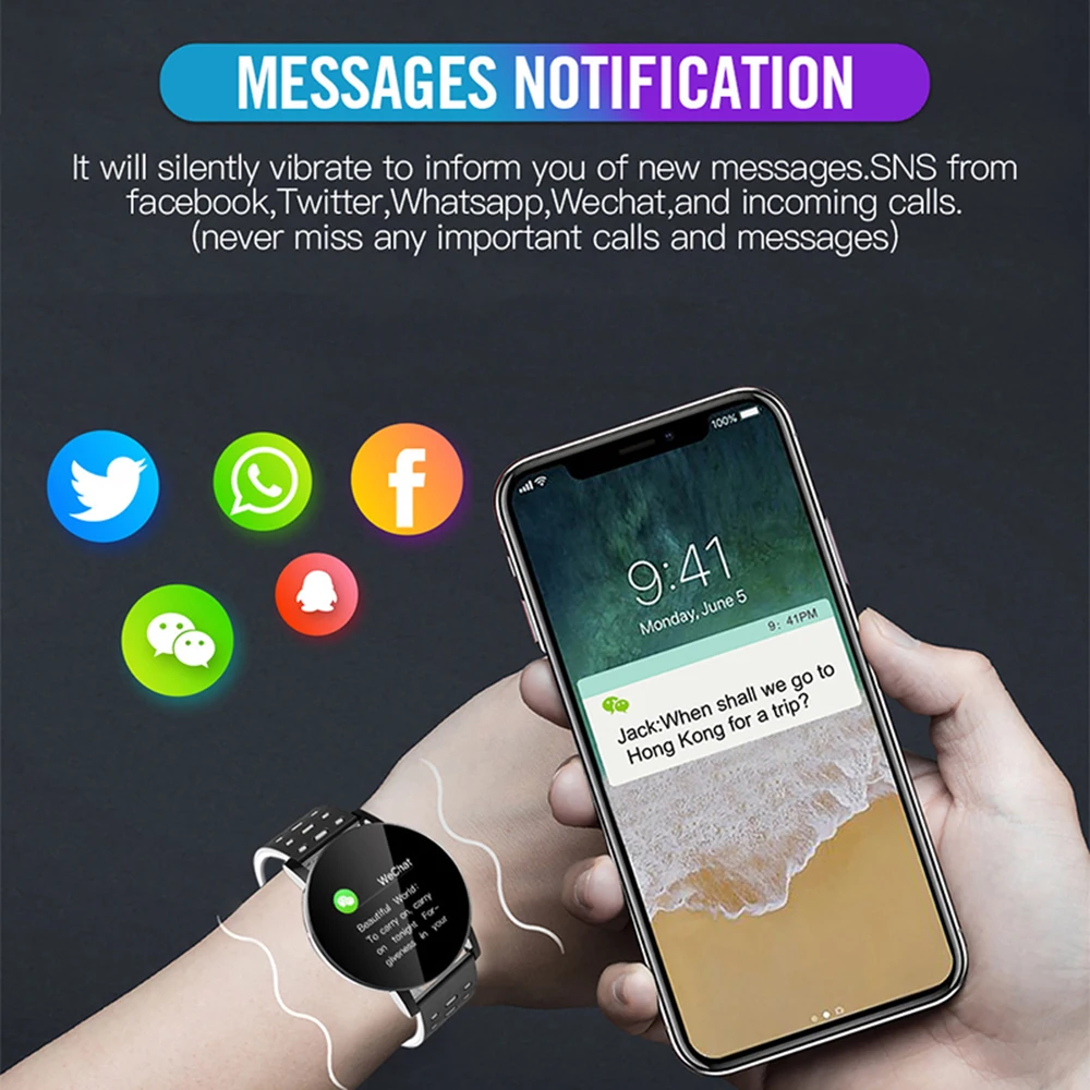 119Plus Smart Watch Sleep Monitoring Fitness Record Smartwatch For Men Women Multiple Sports Modes Sports Watch For Android IOS - Купить с бесплатной доставкой