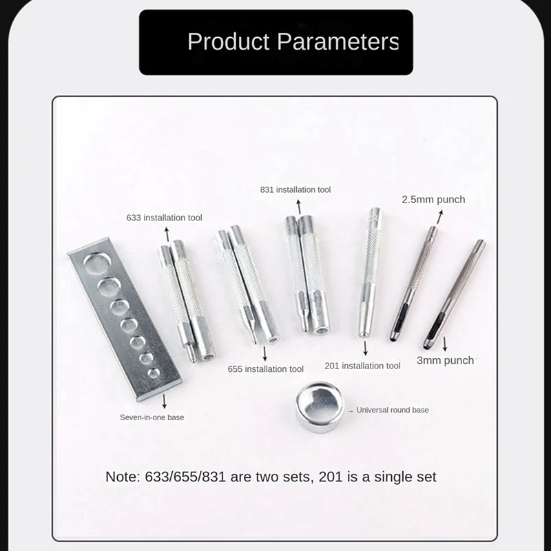 IDKvcxOYЗдесь вы сможете купить 11PCS 633/655/831/201 Rivet Base Snap Button Base Punching Leather Snap Button Set Silver с бесплатной доставкой до вашего почтового отделения.