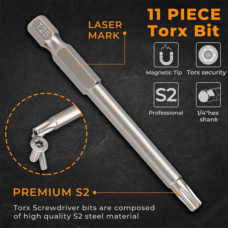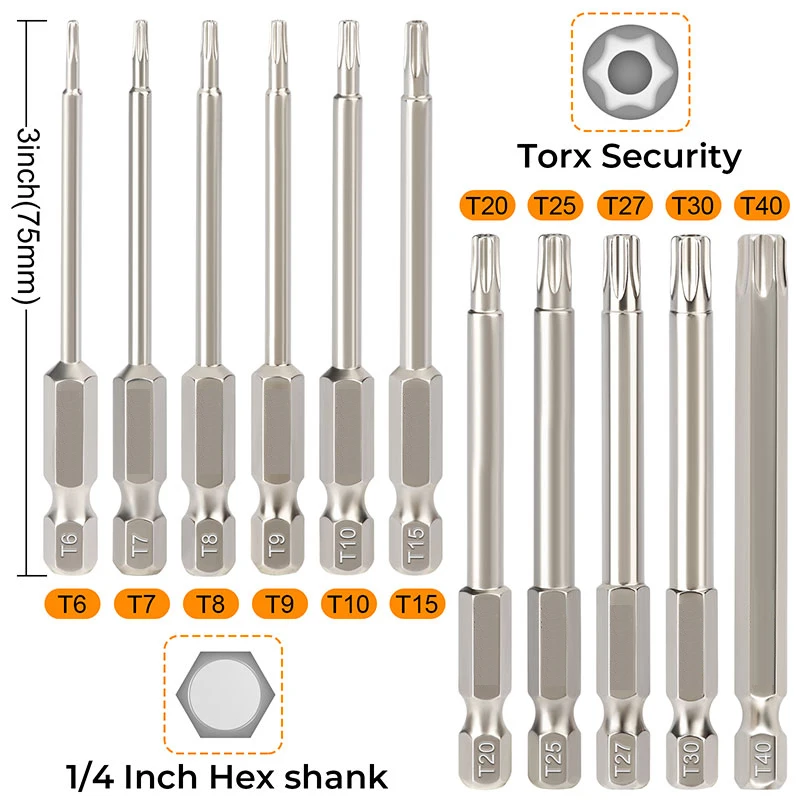 TlwxrMWbdHere you can buy 11Pcs Security Torx Bit Set Impact Rated Tamper Resistant Star Bit Set 75mm 1/4 Inch Hex Torx Screwdriver Bit Set with free delivery to your post office.