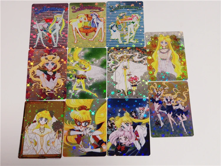 11pcs/set Sailor Moon Can Paste Flash Card Animation Flash Pattern Game Collection Card Children's Birthday Card Collection Card - Купить с бесплатной доставкой