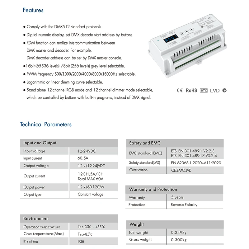 uxGfOWehKHere you can buy 12 Channel DMX512 Decoder Constant Voltage with Display 12CH CV PWM Decoder for Setting DMX Address with free delivery to your post office.