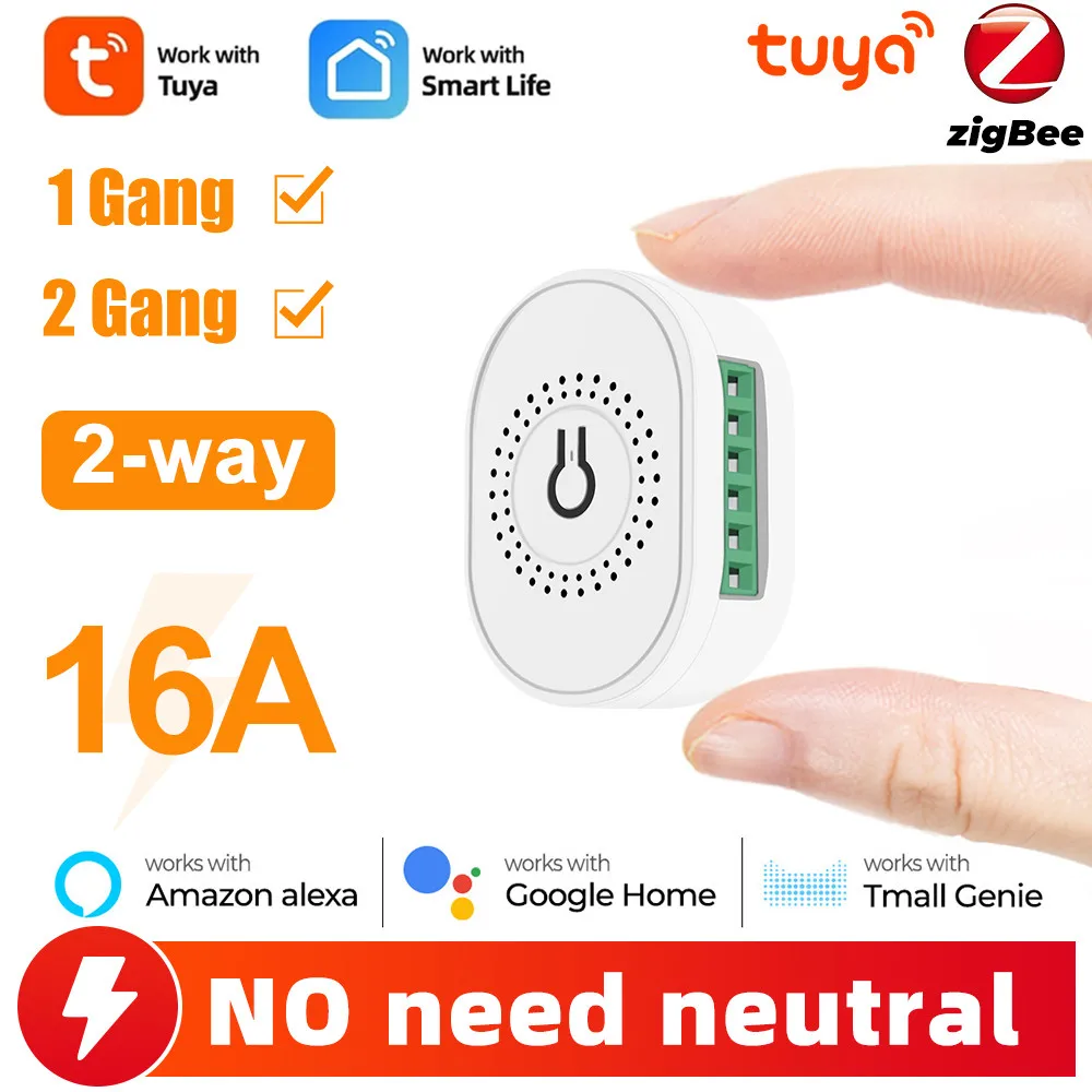 PWmSvLeCBRHere you can buy 1/2 Gang 16A No Neutral Wire Tuya ZigBee Smart Light Switch Mini Module Breaker 2 Way Control For Alexa Google Home with free delivery to your post office.