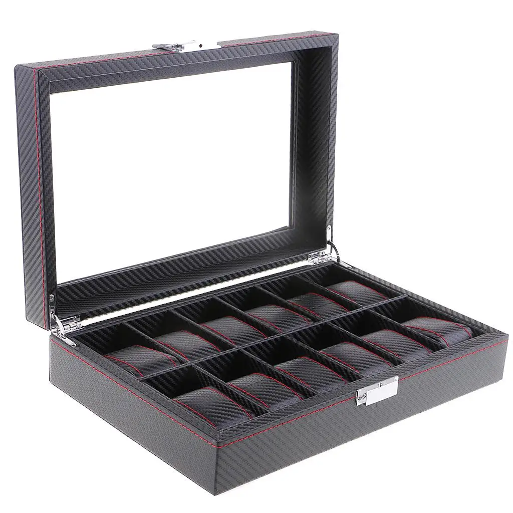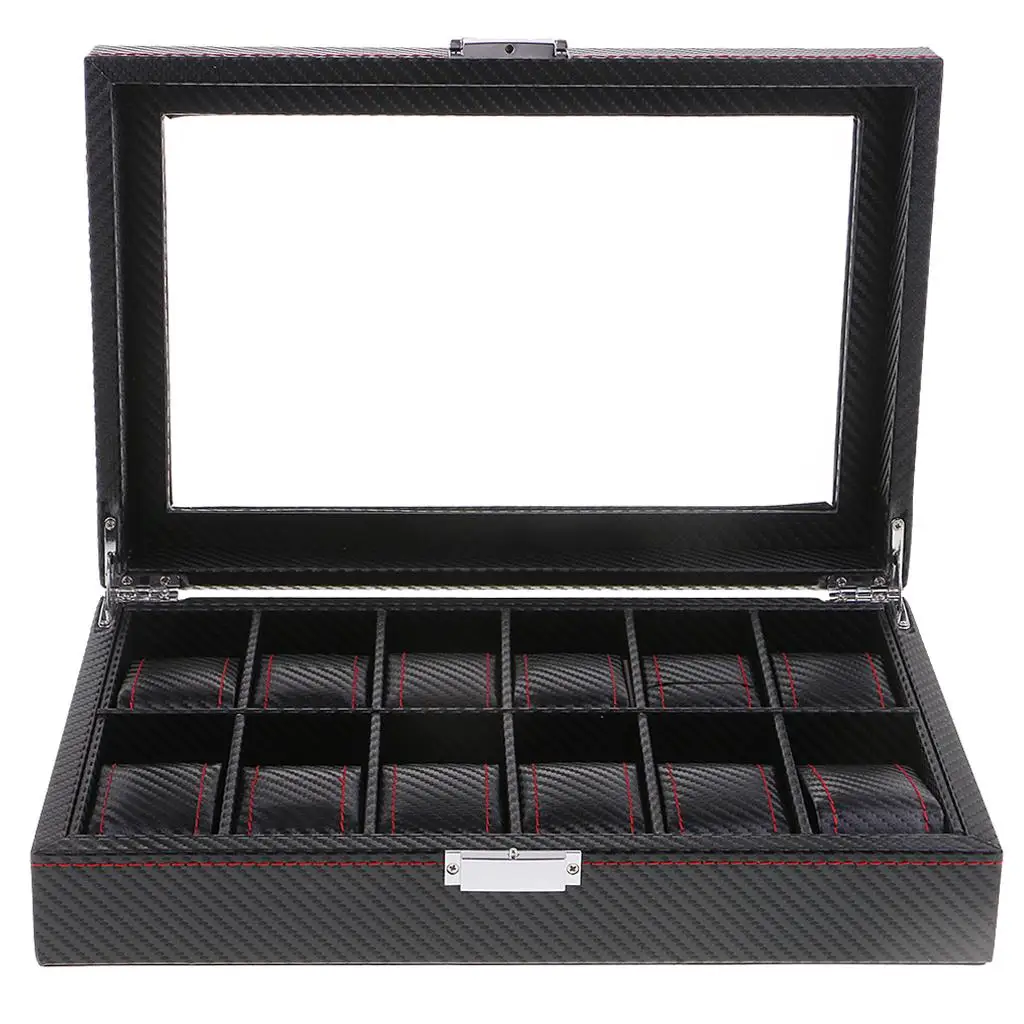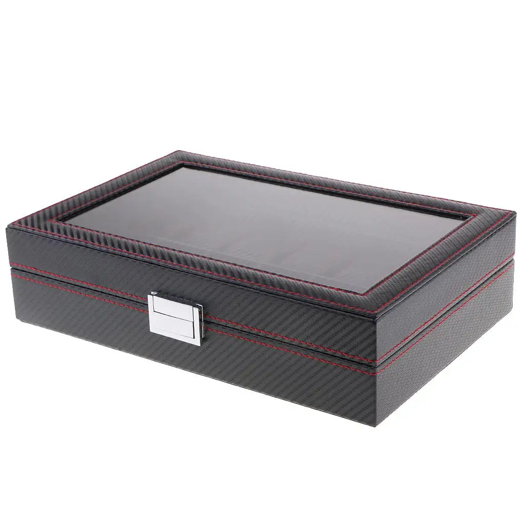 xHOGtObXVVHere you can buy 12 Slots Black PU Leather Glass Collect Watch Rings Display Storage Box Case with free delivery to your post office.