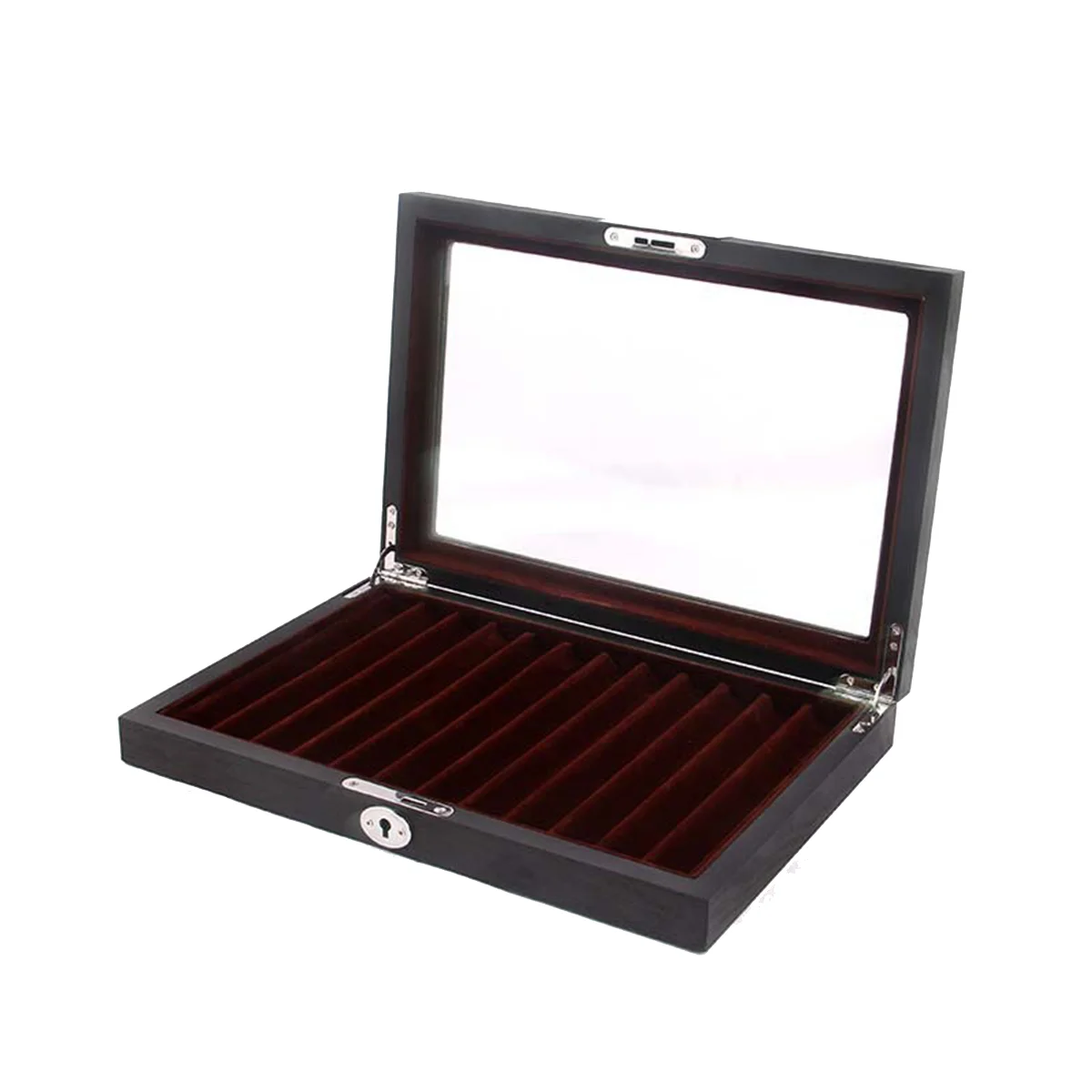 12 Slots Wood Pen Display Box Deluxe Pen Case with Key Transparent Window Fountain Storage Showcase Organizer-Collection - Купить с бесплатной доставкой