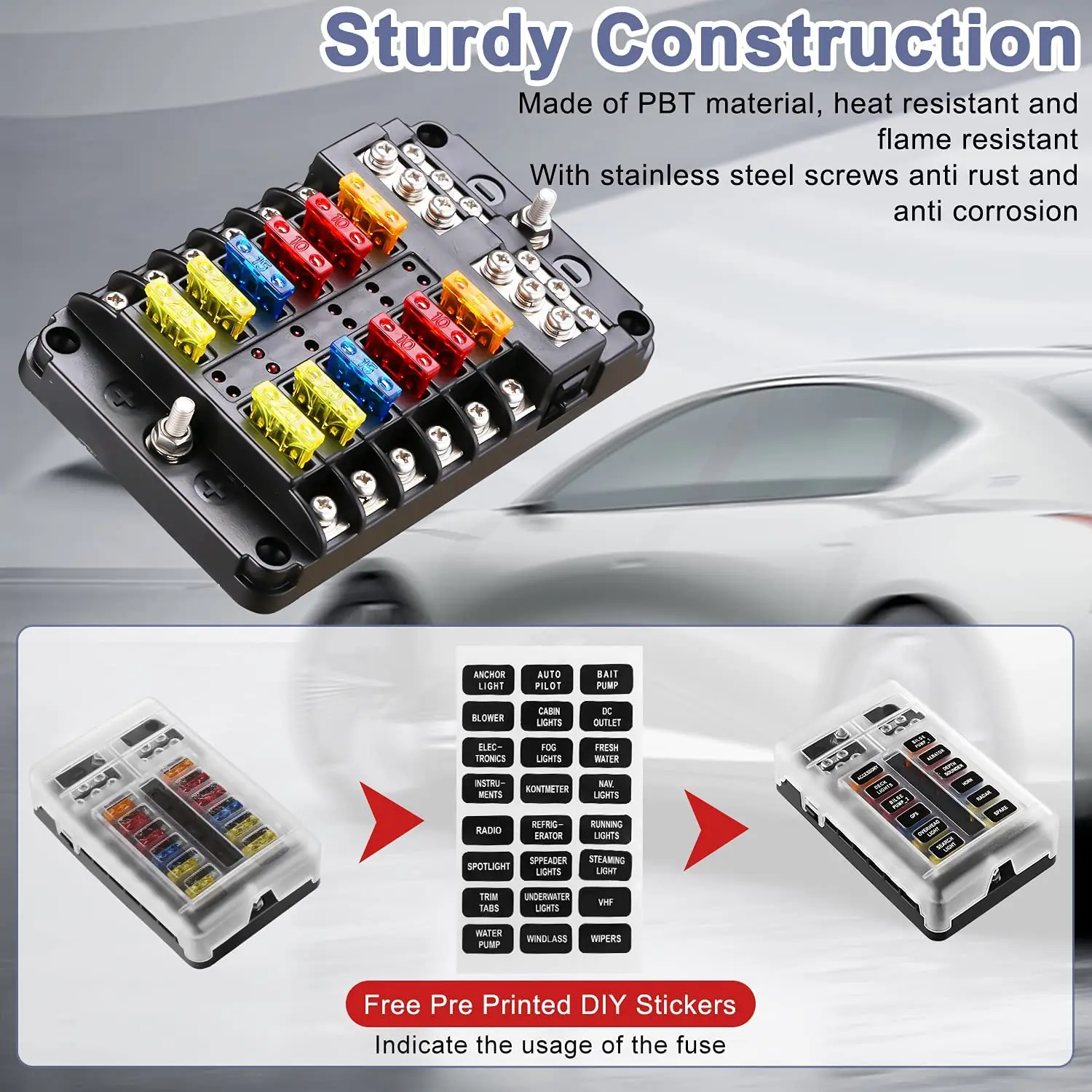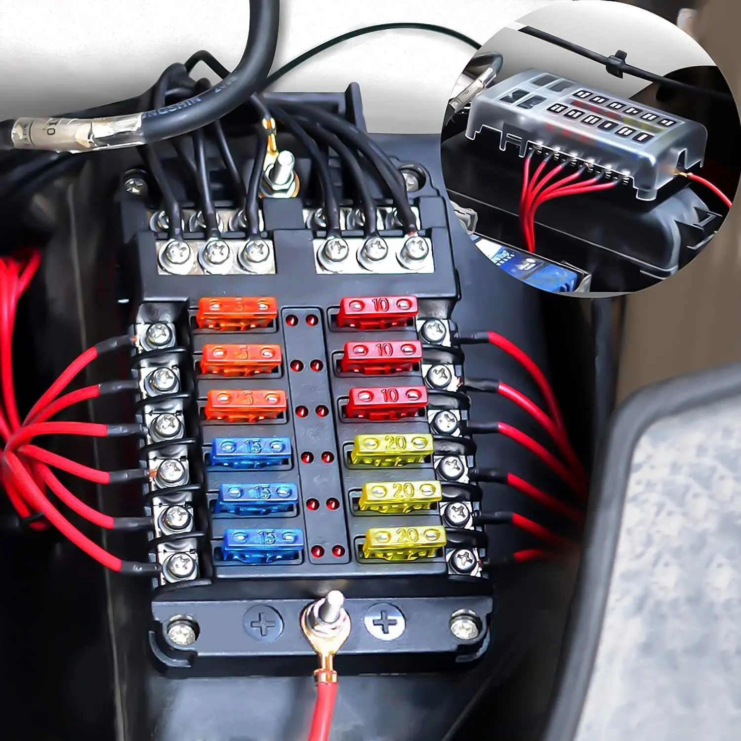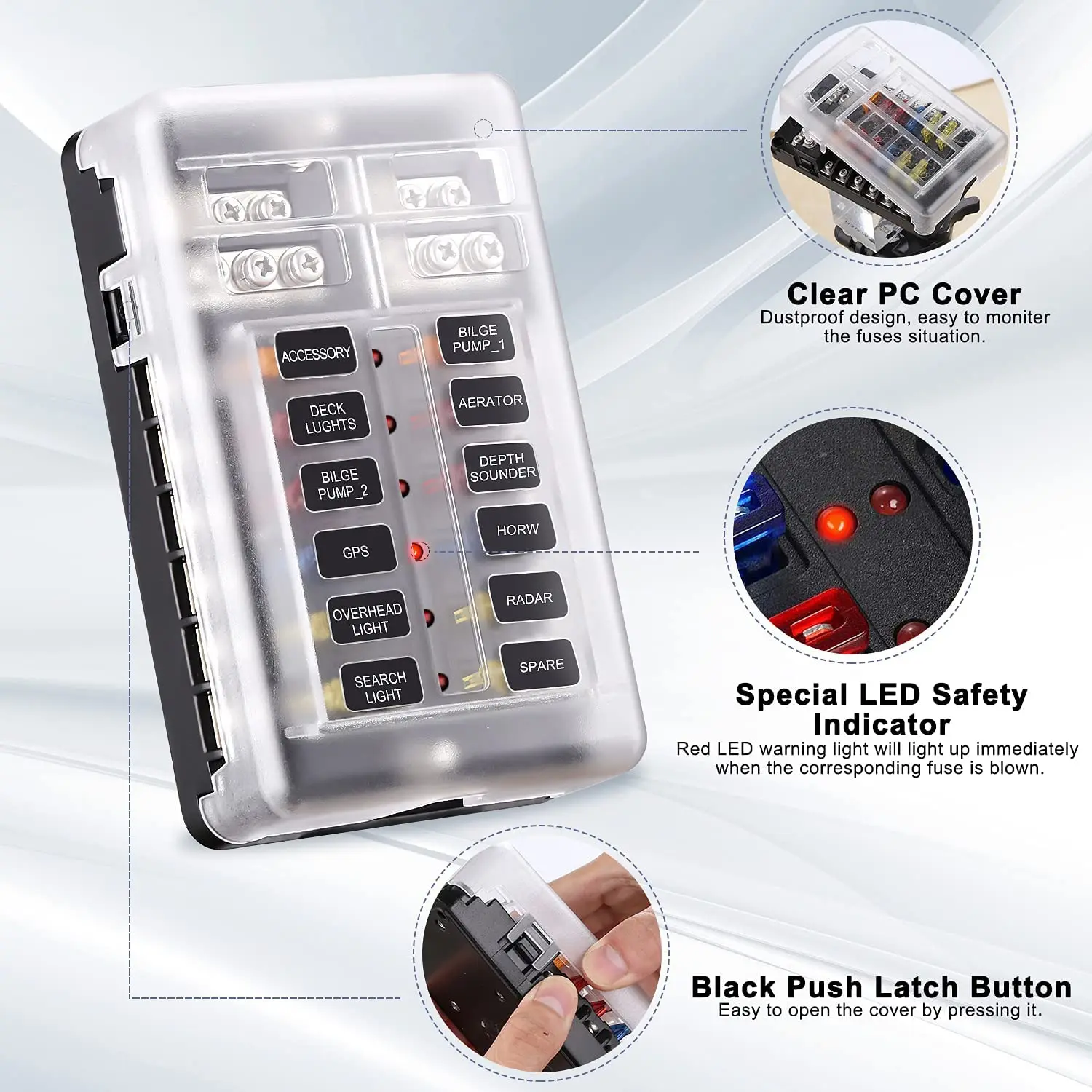 PgaGbxZhhLHere you can buy 12 Way Blade Fuse Block, 12 Circuit Fuse Box Holder W/ LED Indicator Waterproof Protection Cover - Fuse Block Panel with free delivery to your post office.