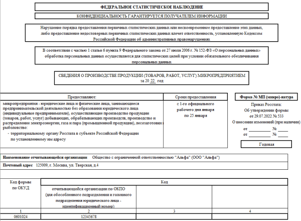 12 ф статистика порядок заполнения строка 330