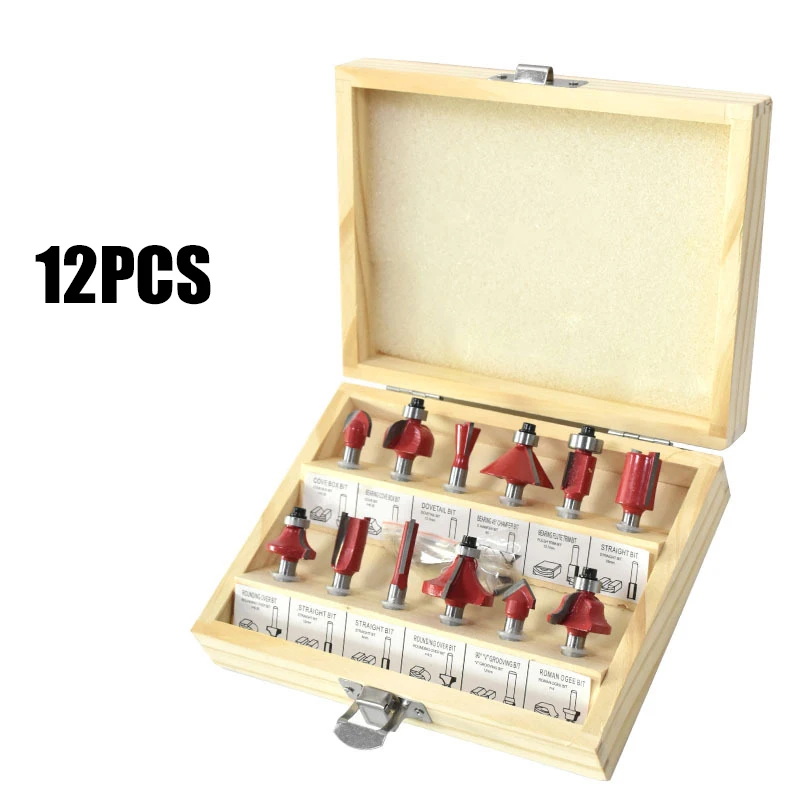 12-piece Woodworking Milling Cutter 6/6.35mm Wood Trimming Engraving Machine Multitool Carbide Machine Milling Cutter Tools - Купить с бесплатной доставкой