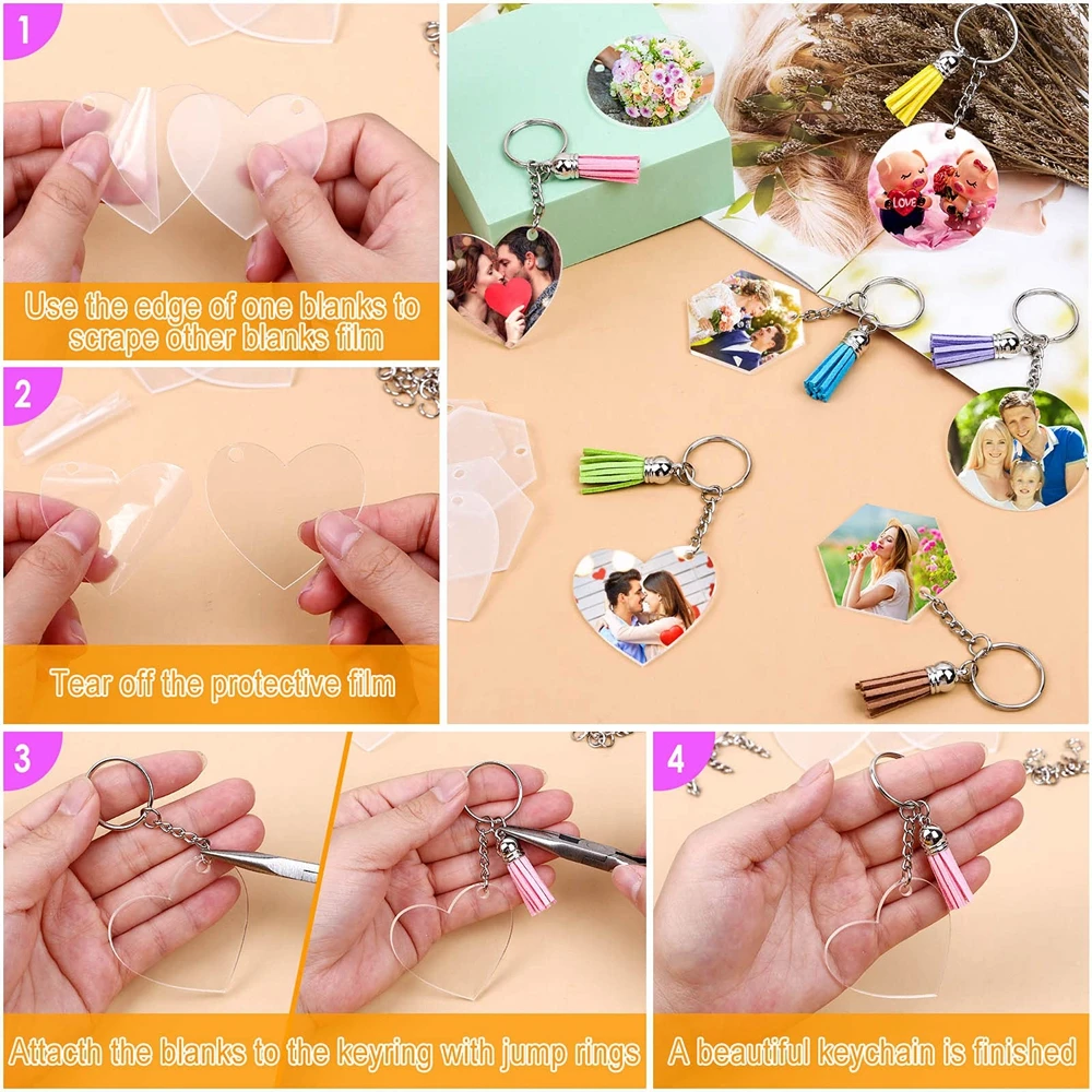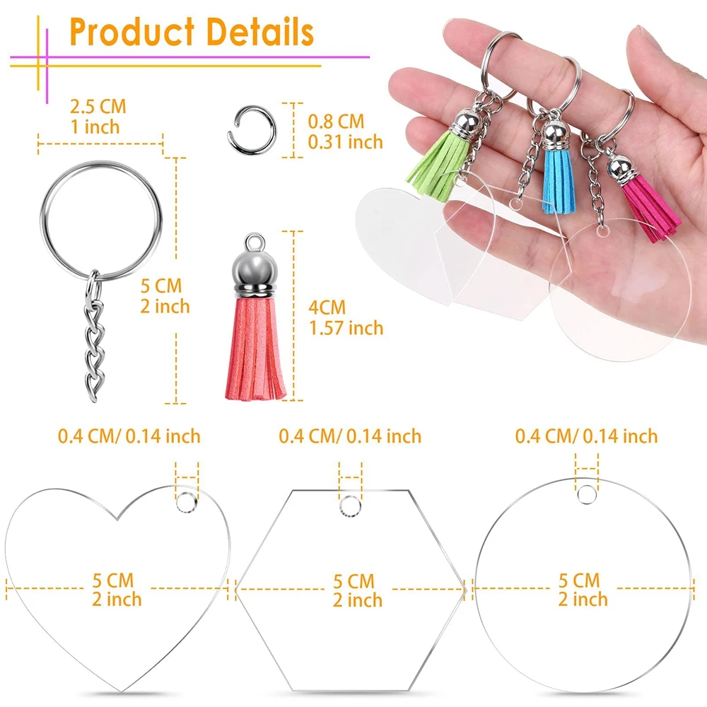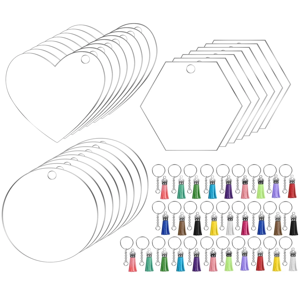 120 PCS Acrylic Keychains Set Heart Clear Blanks Tassels Key Chain Jump Rings for Vinyl Crafting DIY Holiday Decoration - Купить с бесплатной доставкой