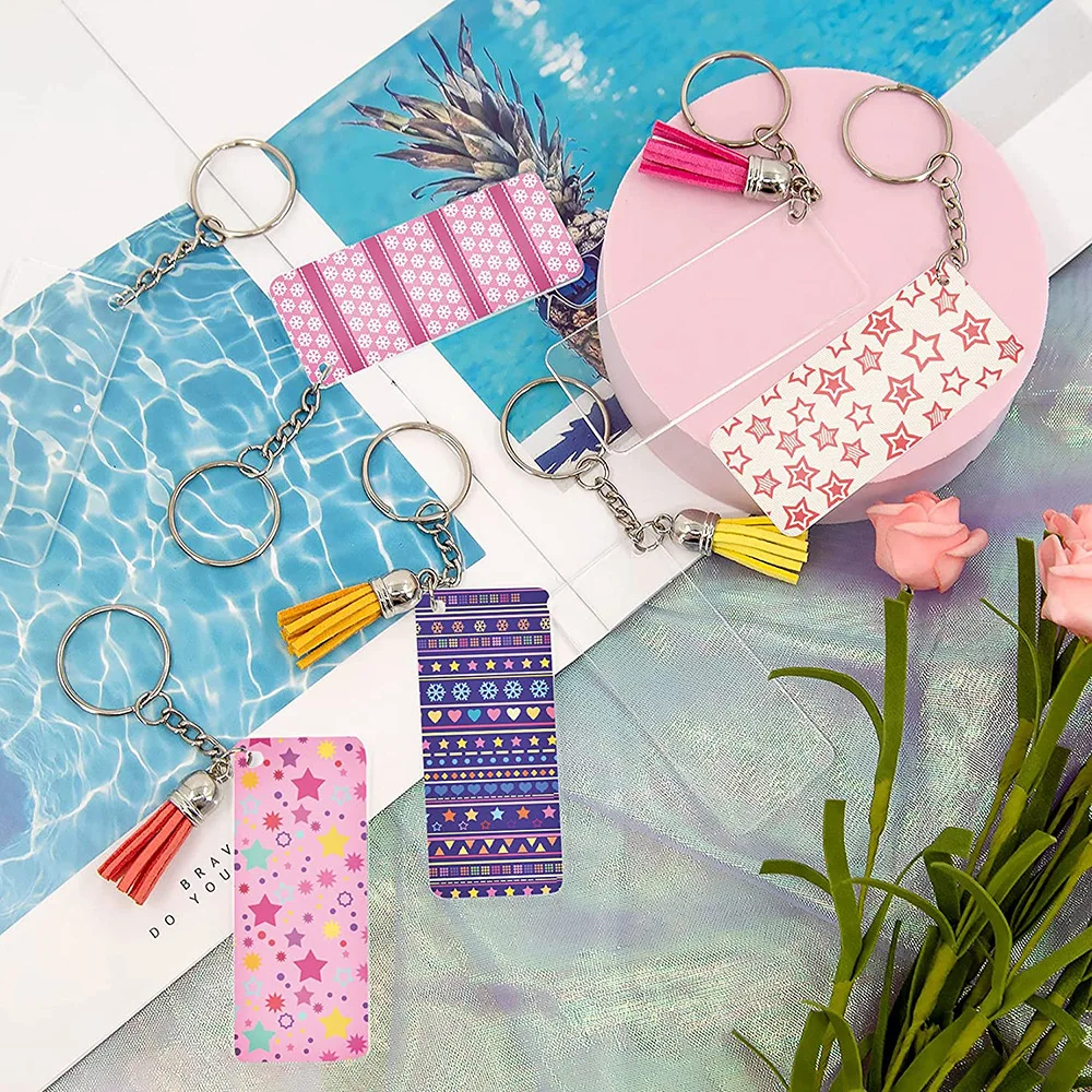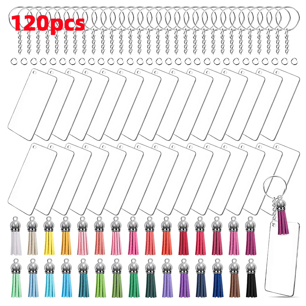 120Pcs Acrylic Keychain Blanks Kit Including Rectangle Acrylic Blanks Key Rings and Jump Rings for Vinyl and DIY Craft - Купить с бесплатной доставкой