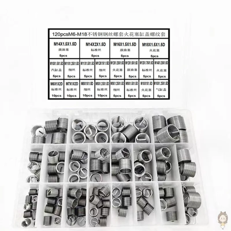 hBlNfiOrЗдесь вы сможете купить 120pcsM6-M18 Automotive Spark Plug Oil Pan Thread Repair Kit Steel Wire Thread Insert Tooth Sleeve Combination Box с бесплатной доставкой до вашего почтового отделения.
